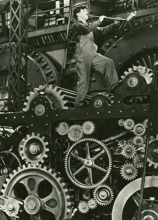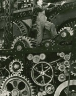 Caratteristiche:  Legatura in cartone telato di colore grigio con titoli in rosso, sopraccoperta con illustrazione fotografica in bianco e nero (fotogramma dal film "Tempi moderni"), titoli in grigio su fondo bianco