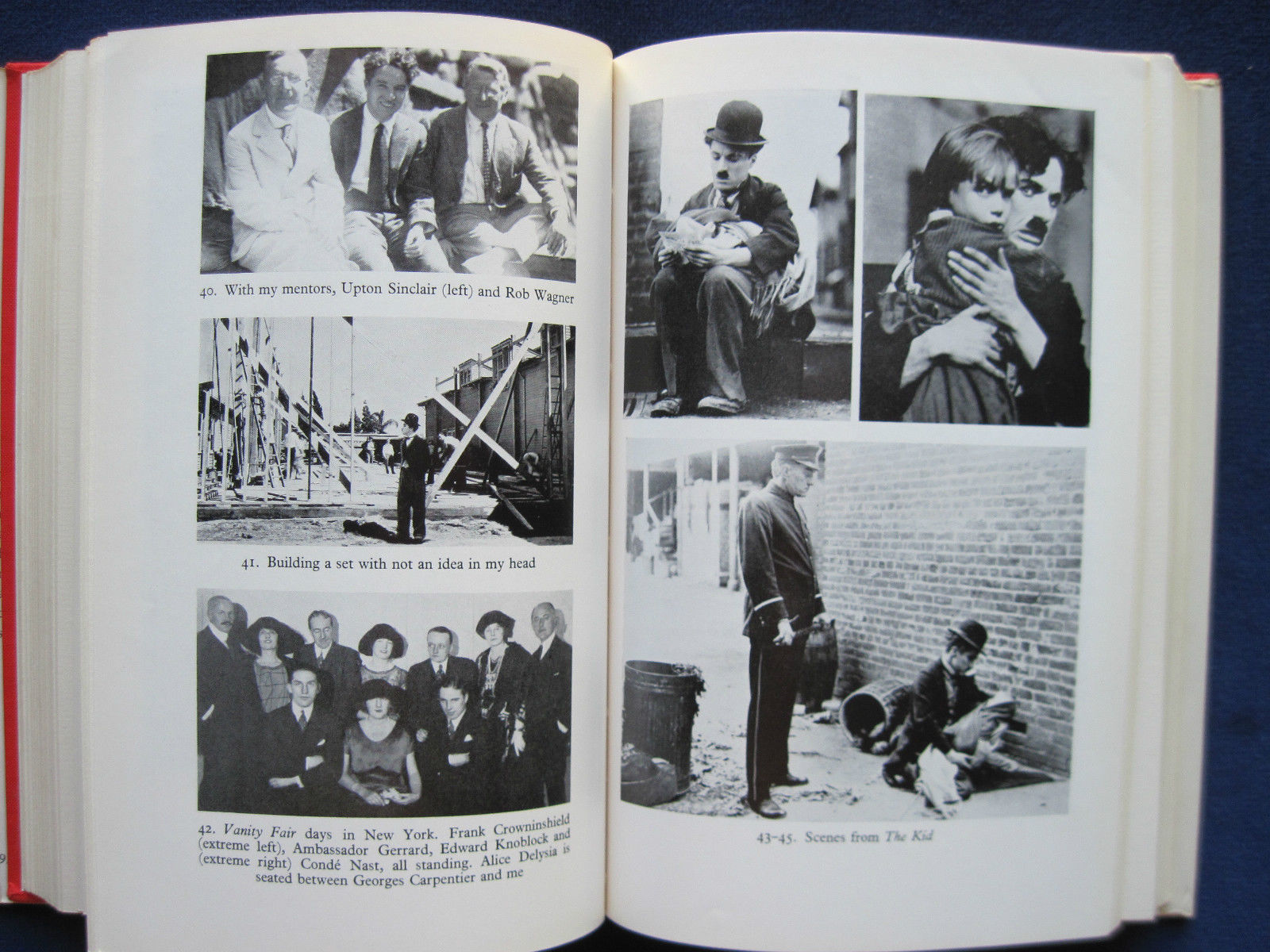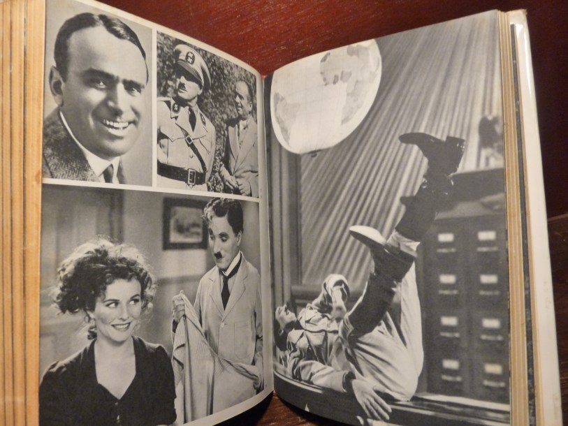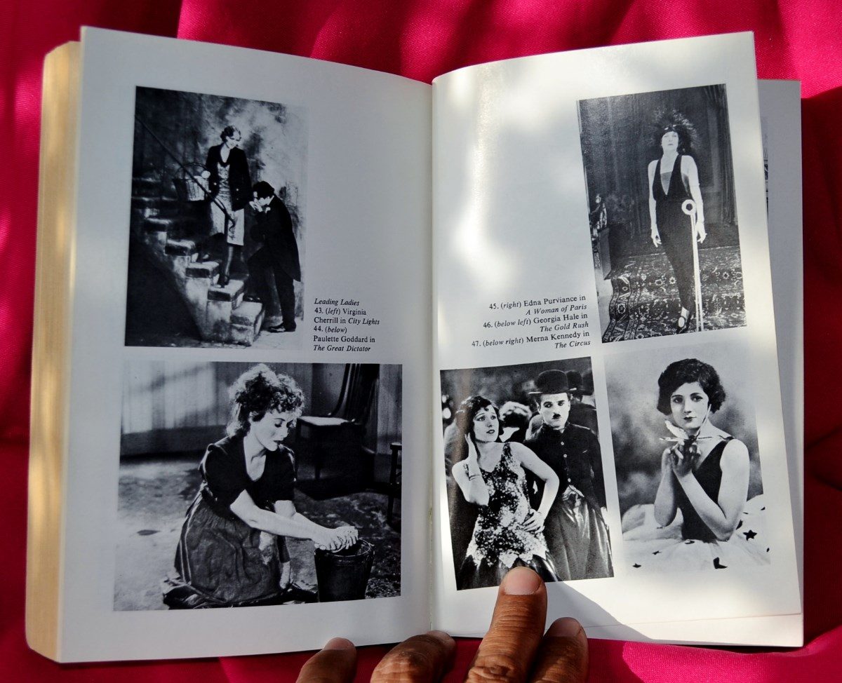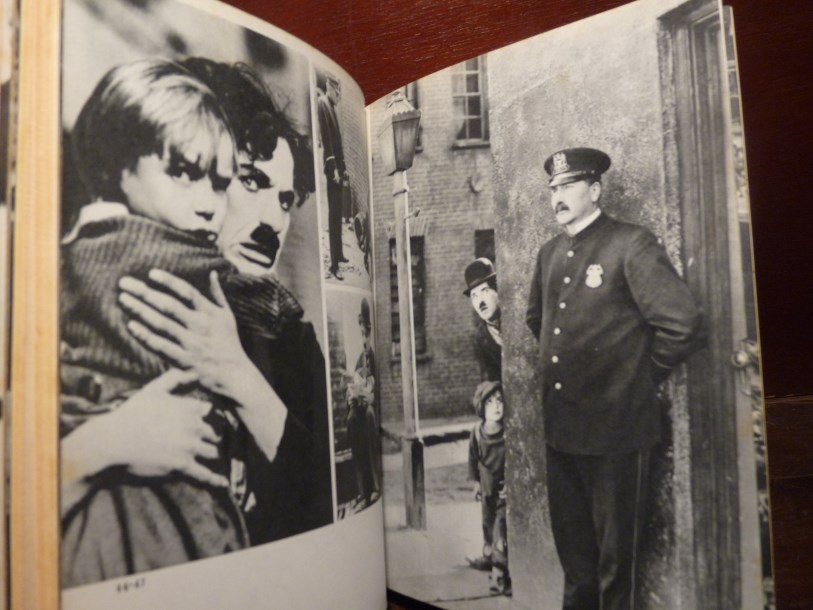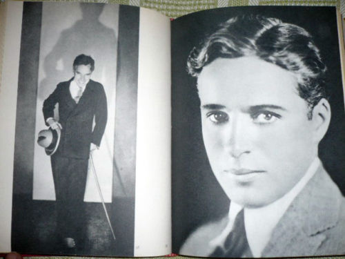 Caratteristiche:  Legatura in tela di colore rosso porpora con titoli color oro al dorso, sopraccoperta con composizione fotografica (due ritratti a specchio di Chaplin), titoli in blu, rosso e nero su fondo bianco. Con all'interno 114 illustrazioni fotografiche in bianco e nero