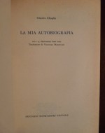 Prima edizione italiana di My Autobiography di Charles Chaplin, pubblicata da Arnoldo Mondadori nel settembre del 1964, per la collana “Le Scie”. L’edizione originale è stata pubblicata, nello stesso 1964, dalla Simon & Schuster di New York. La traduzione è di Vincenzo Mantovani. Il volume, stampato nelle Officine Grafiche di Verona, è corredato da 114 illustrazioni fotografiche in bianco e nero fuori testo.