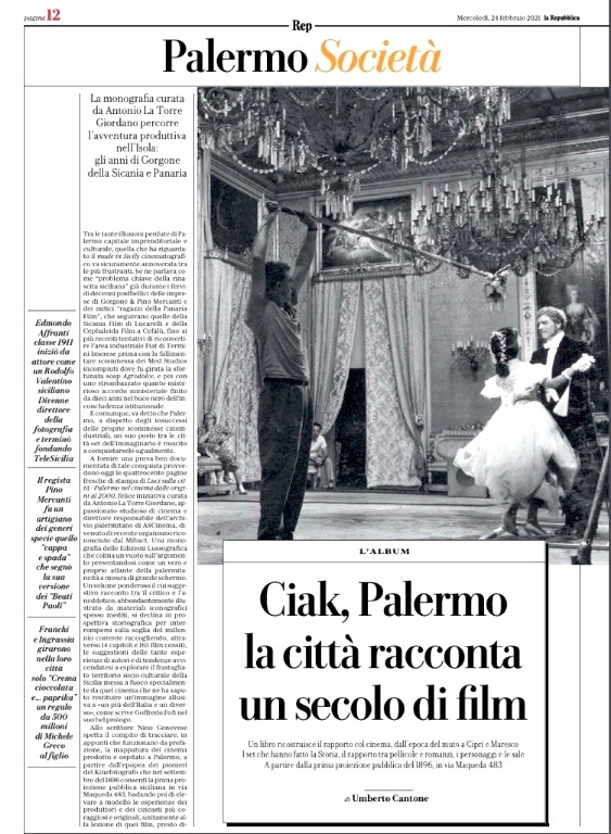 A fornire una prova ben documentata di tale conquista provvedono oggi le quattrocento pagine fresche di stampa di Luci sulla città- Palermo nel cinema dalle origini al 2000, felice iniziativa curata da Antonio La Torre Giordano, appassionato studioso di cinema e direttore responsabile dell’archivio palermitano di ASCinema, divenuto di recente organismo riconosciuto dal MiBACT.