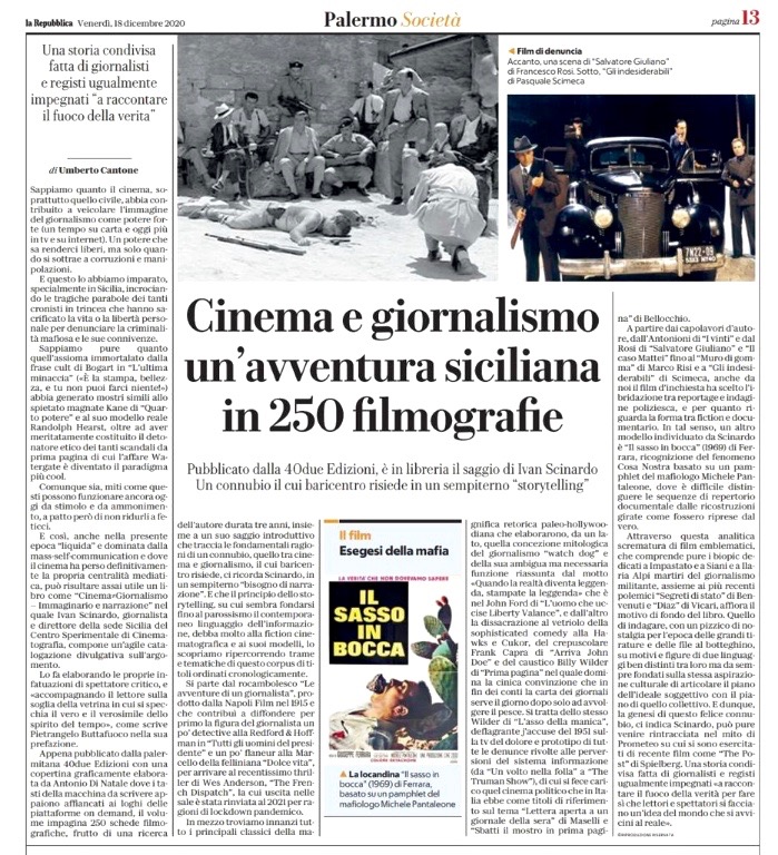 Cinema e giornalismo. Un’avventura siciliana in 250 filmografie – Il saggio di Ivan Scinardo pubblicato dalla 40due Edizioni