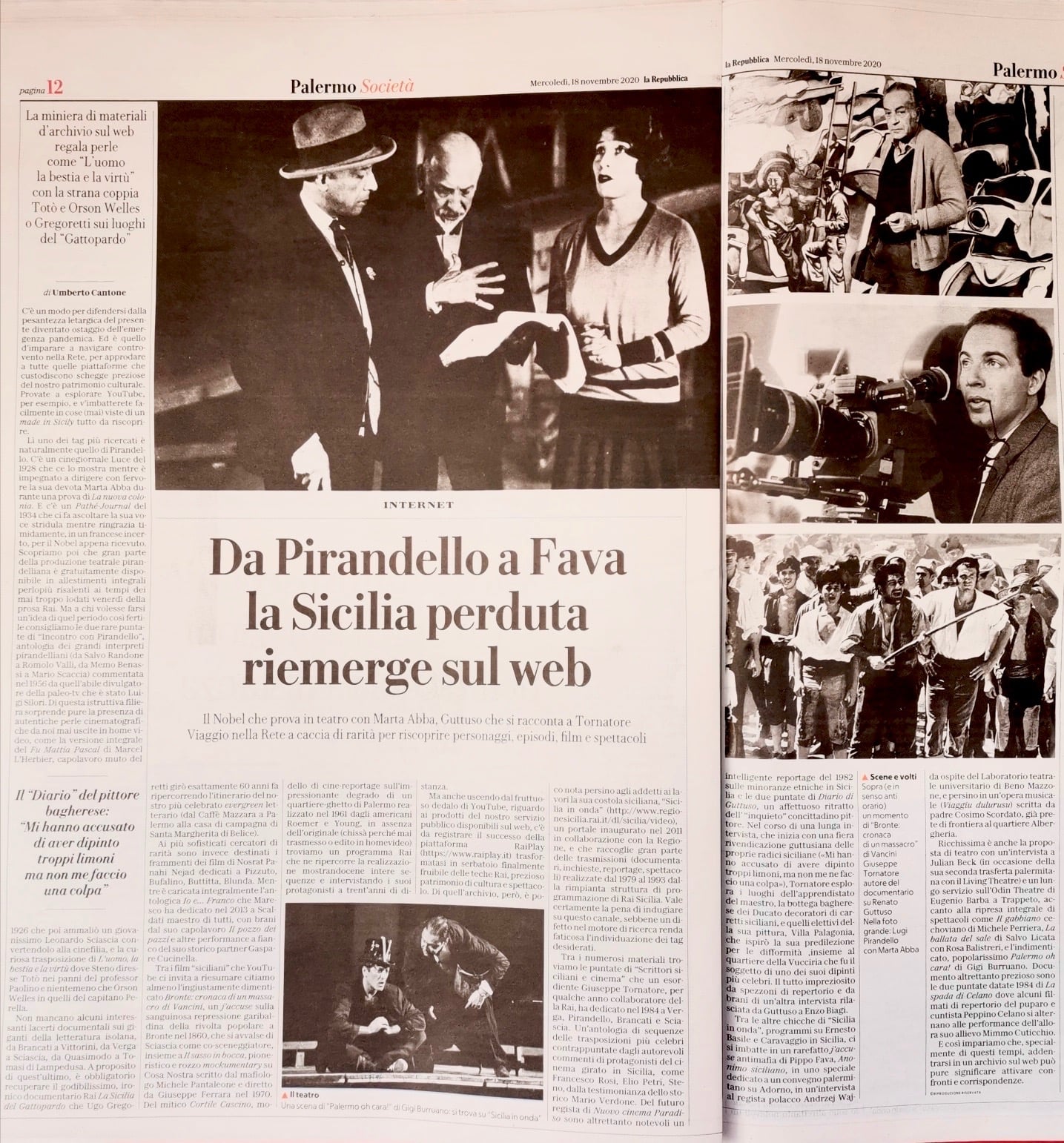 “Da Pirandello a Fava. La Sicilia perduta riemerge sul web” – la Repubblica/Palermo, 18 novembre 2020