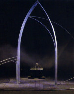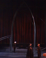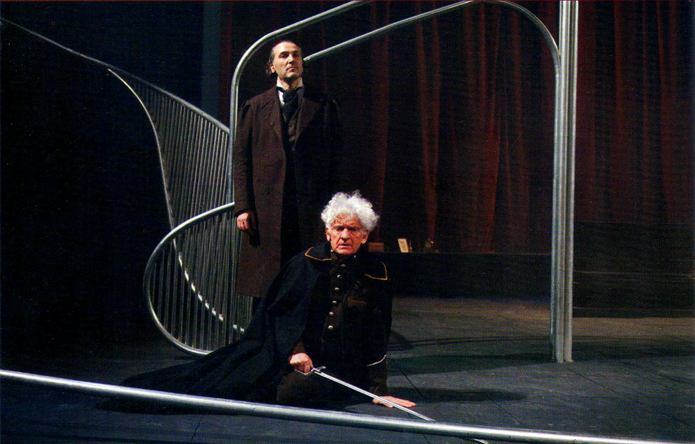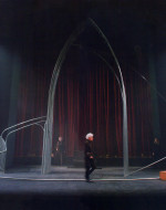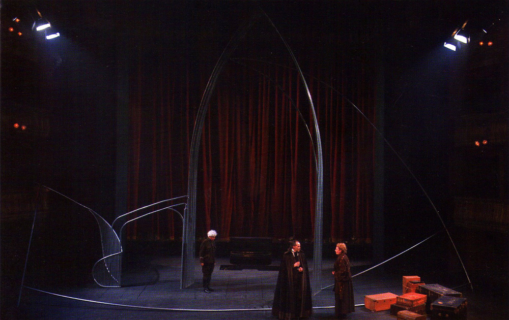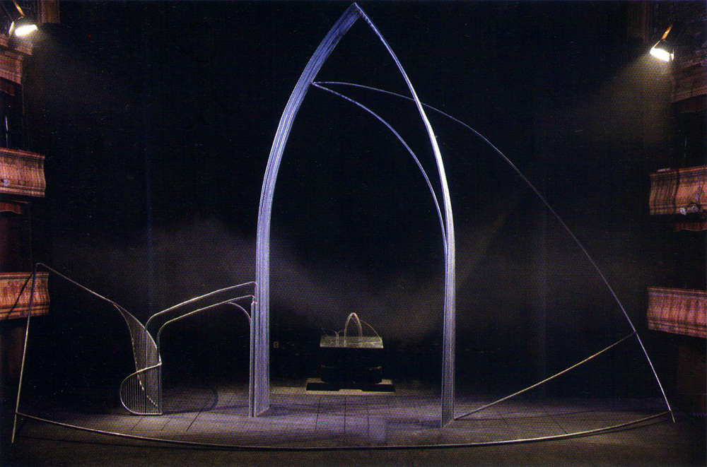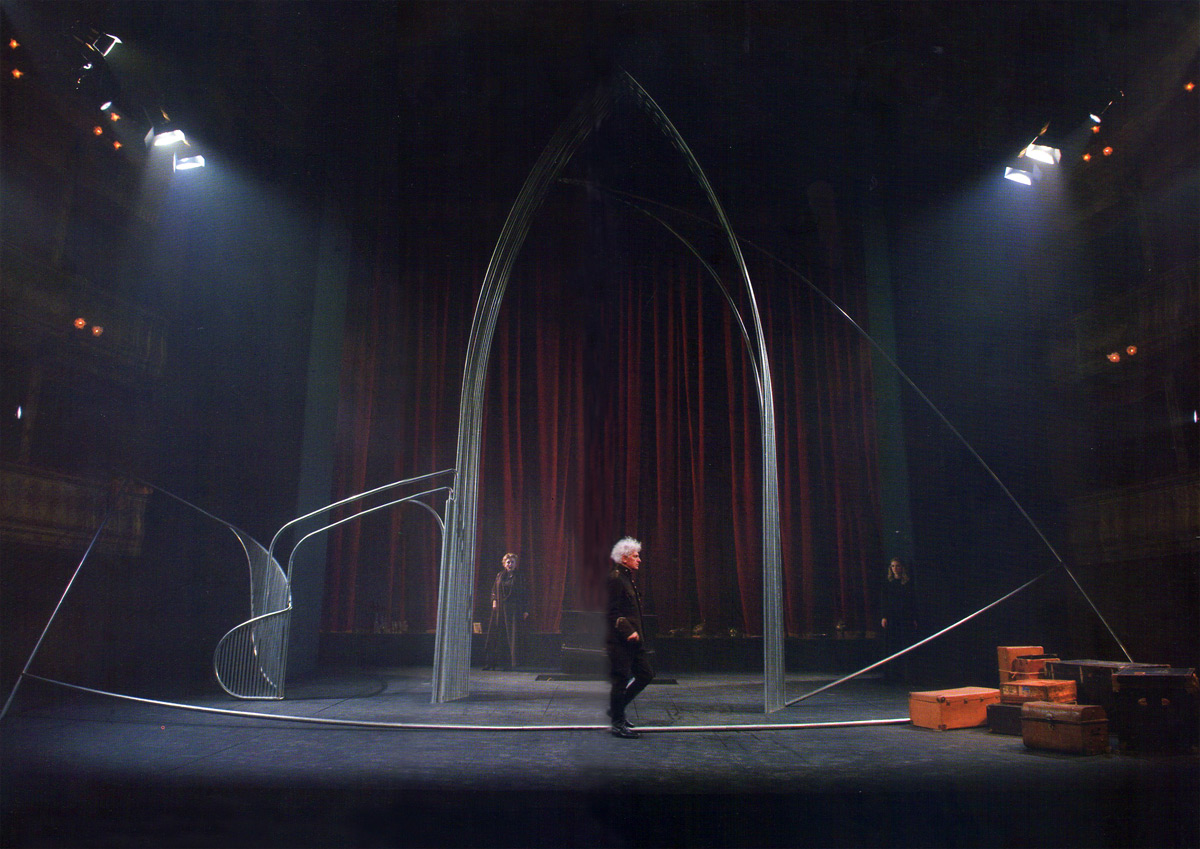 La scenografia di Carriglio allude così alle architetture della psiche: un omaggio all’impianto concettuale della letteratura di Kafka, e un concettuale richiamo all’esperienza umana della rovina. La prigione carragliana si fa reificata presenza “musicale”: campane e tubi, risonanze di Bach, la musica della malinconia.