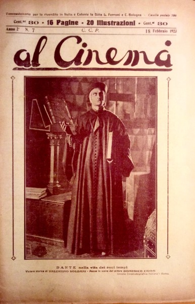 Numero speciale della rivista illustrata Al Cinemà (anno 2°, n. 7, 18 febbraio 1923) quasi interamente dedicato al film Dante nella vita e nei tempi suoi diretto dal regista e scenografo torinese Domenico Gaido (1875-1950). Il film fu girato nel 1921 ma uscì solamente alla fine dell’anno successivo.