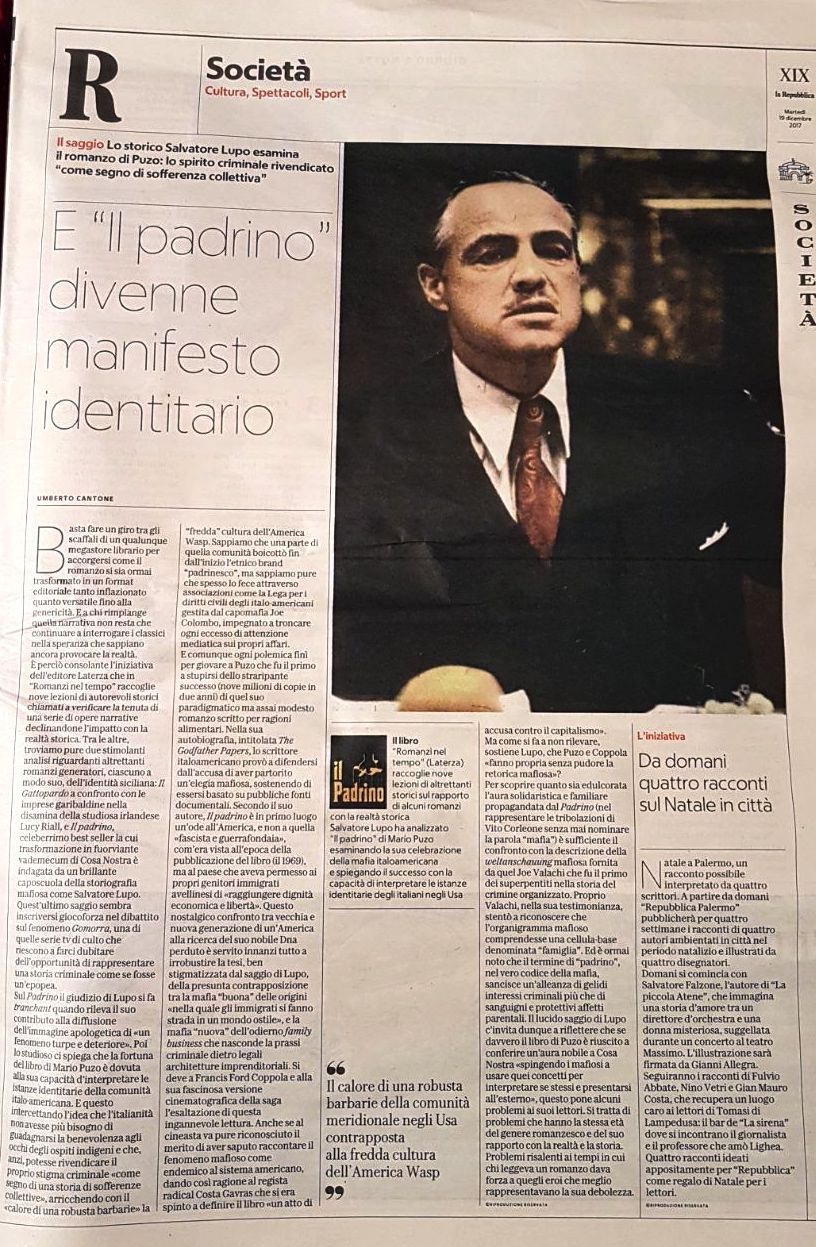 Poi lo studioso ci spiega che la fortuna del libro di Mario Puzo è dovuta alla sua capacità d’interpretare le istanze identitarie della comunità italo-americana.