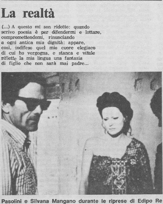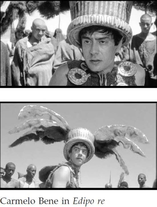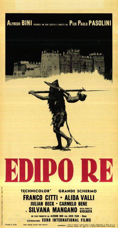 Film di riferimento:  Edipo re (Italia, 1967) di Pier Paolo Pasolini. Sceneggiatura di Pier Paolo Pasolini. Fotografia di Giuseppe Ruzzolini. Scenografia di Luigi Scaccianoce. Costumi di Danilo Donati. Con Franco Citti, Silvana Mangano, Alida Valli, Carmelo Bene, Julian Beck, Luciano Bartoli, Francesco Leonetti, Ninetto Davoli