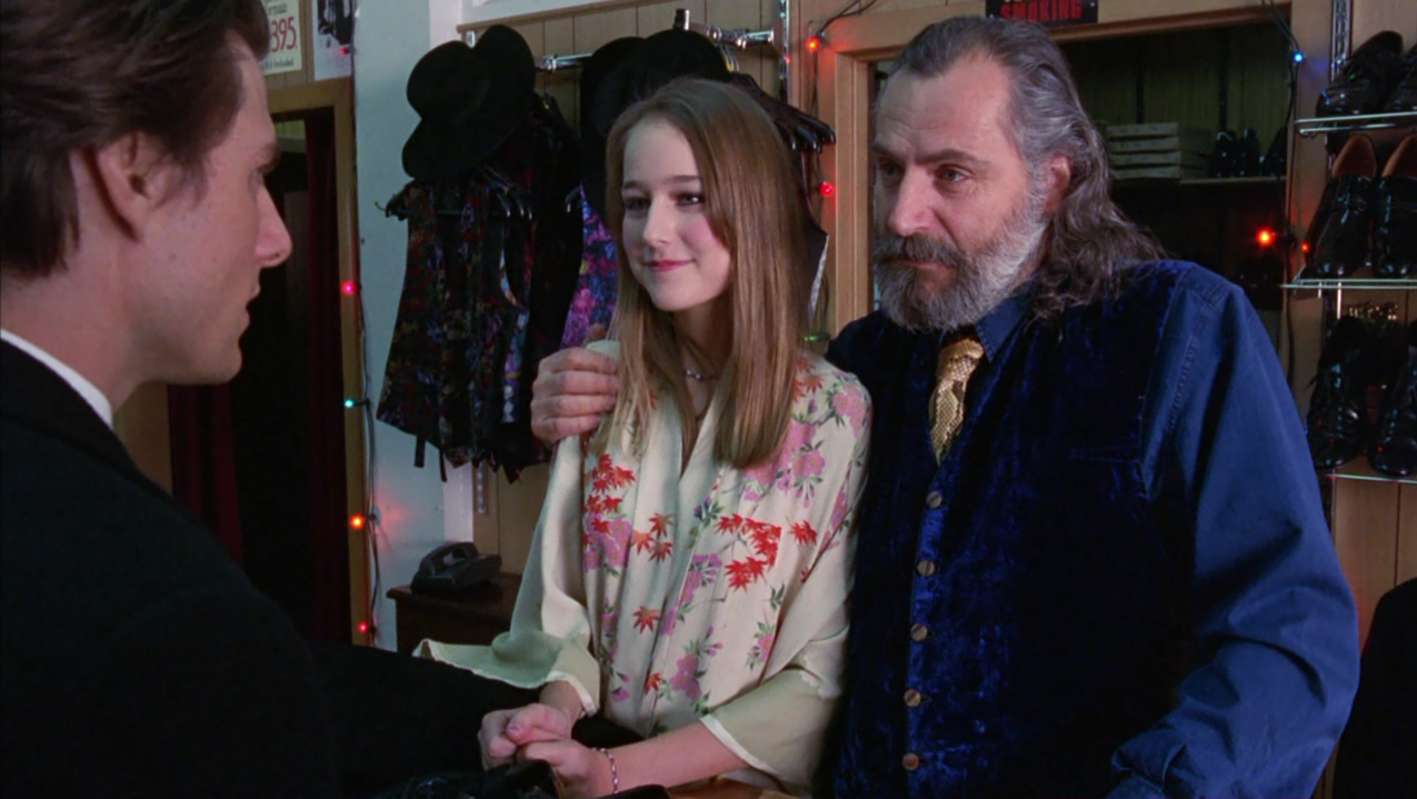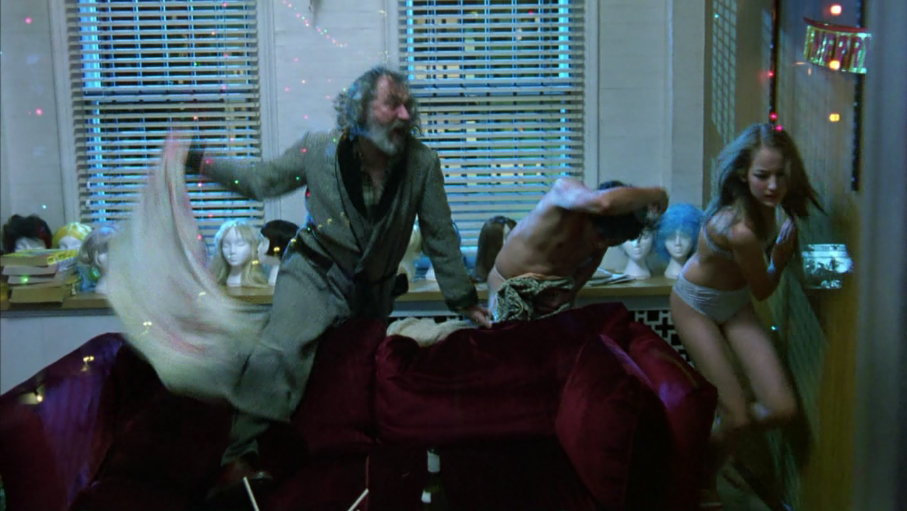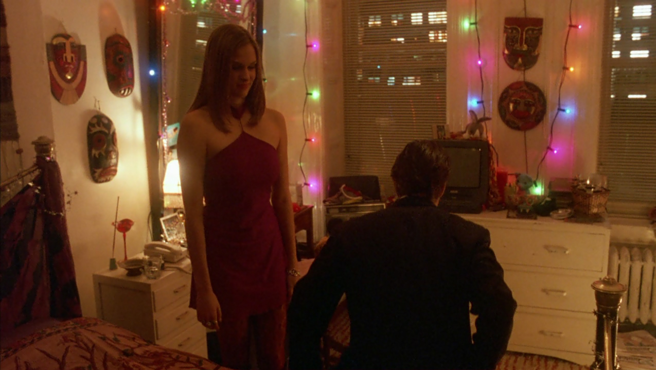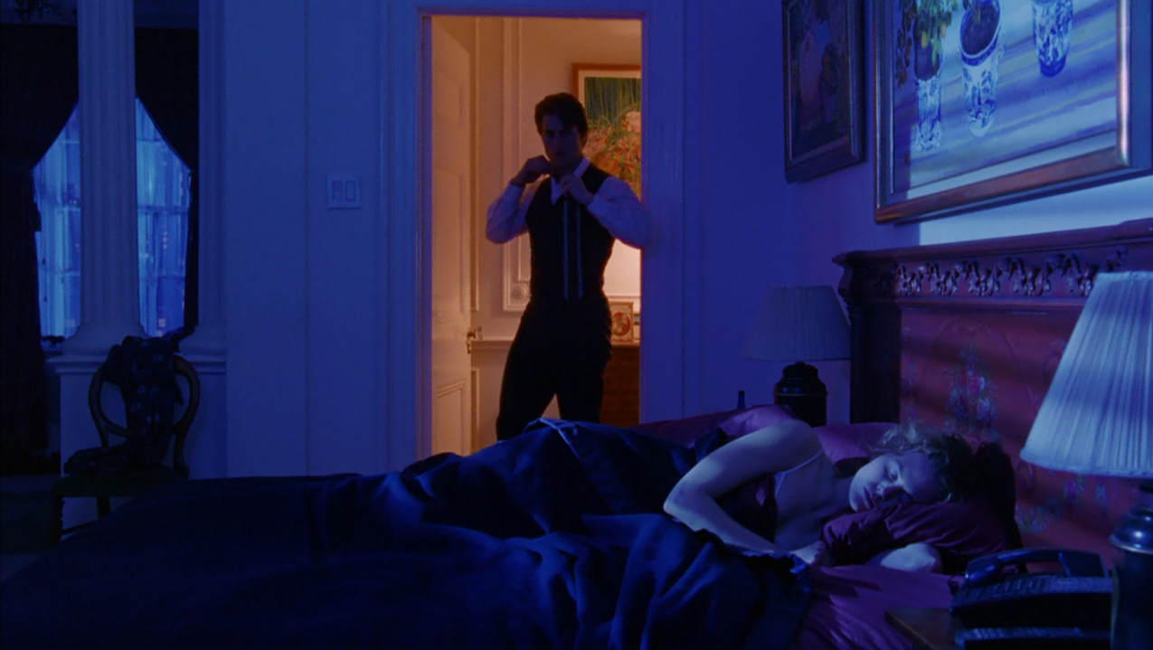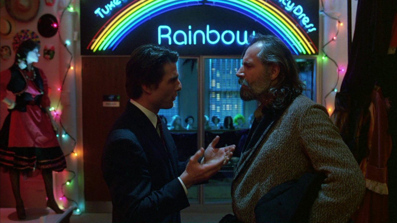 Oramai scosso dagli avvenimenti, Bill anziché rincasare vaga per la New York notturna, fino a farsi adescare da una giovane prostituta con la quale però non consuma alcun rapporto, cercando di rassicurare per telefono Alice che non lo vede rincasare. Di nuovo in strada, Bill si reca nel locale dove si esibisce Nick Nightingale, un pianista amico ai tempi dell’università e nuovamente incontrato al party di Ziegler. Questi gli parla di un prossimo lavoro in un luogo segreto dove deve suonare a occhi bendati, e dove per entrare occorrono una maschera e una parola d’ordine: si tratta di un convito orgiastico strettamente esclusivo. Bill più che mai curioso, nonostante le preghiere di Nick a desistere, gli chiede alcuni dettagli come la parola d’ordine utile all’ingresso, Fidelio, e l’indirizzo. Così, di propria iniziativa, si reca presso un noleggiatore di costumi slavo, mr.Milich, imbattendosi in un’ennesima situazione scabrosa. Il negoziante ha infatti colto sul fatto la figlia adolescente nascosta dietro un divano a intrattenersi con due uomini, e la redarguisce aspramente scacciando quelli che paiono due intrusi.