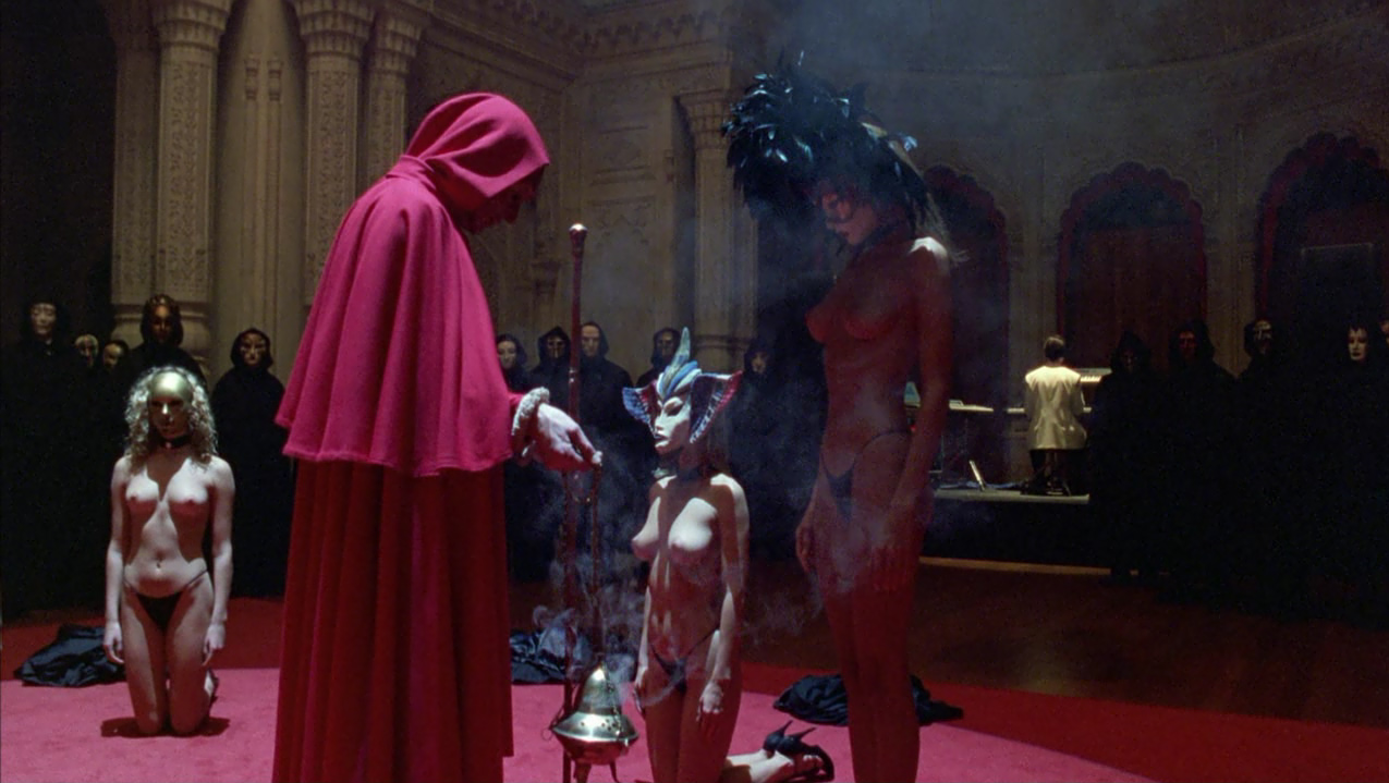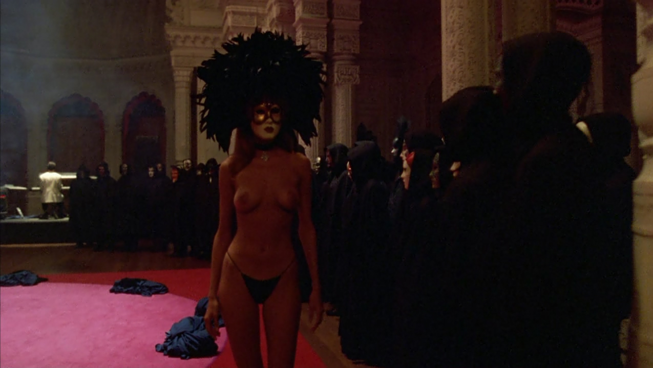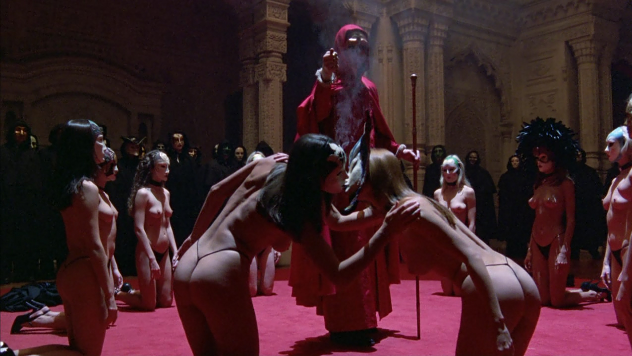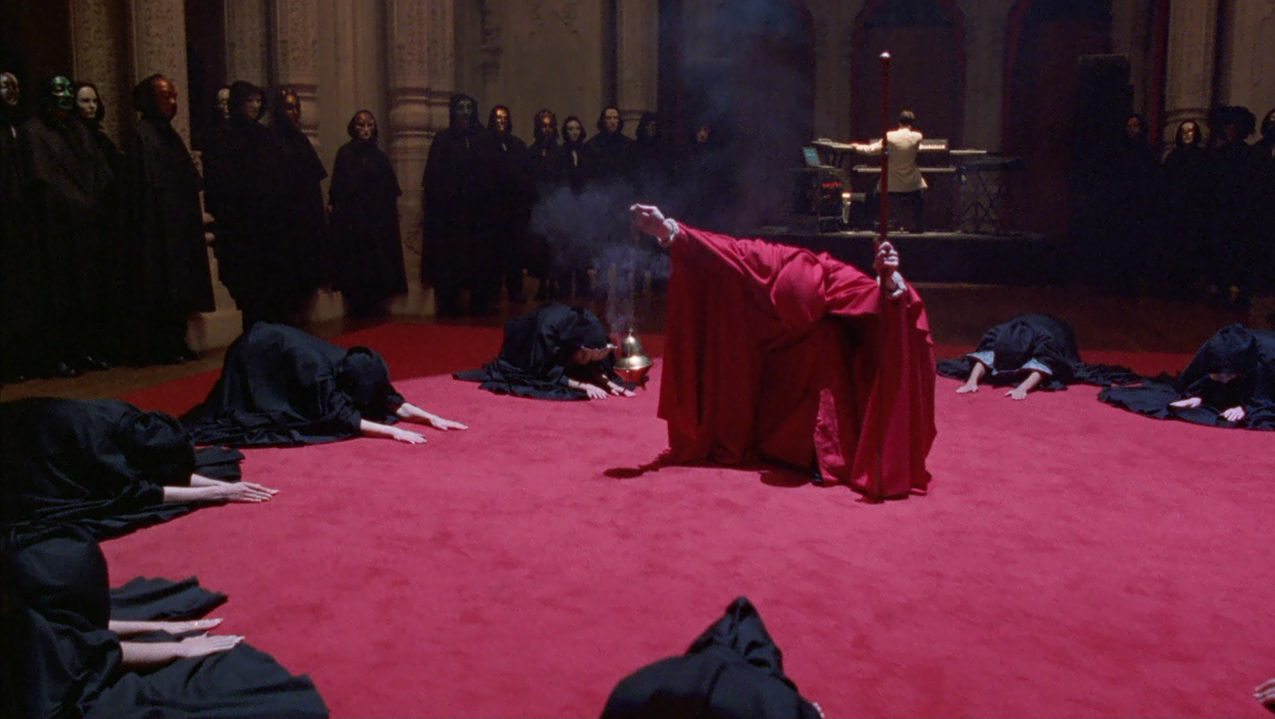 Una volta ottenuto il costume, Bill in taxi raggiunge finalmente una sontuosa villa dove assiste al convito, caratterizzato da una bizzarra funzione con officiante e baccanti nude, tutti rigorosamente con il volto coperto da maschera. L’atmosfera è inquietante, Nick suona l’organo con gli occhi bendati, accompagnando un canto-parlato maschile che risuona cupamente nel salone. Nelle altre sale Bill assiste a scene di accoppiamenti di ogni tipo quando una delle vestali lo avvicina ammonendolo del grave pericolo che corre assistendovi e pochi istanti dopo, infatti, viene portato al cospetto della loggia per essere interrogato dal celebrante, e viene smascherato come intruso. La donna inaspettatamente interviene offrendosi di espiare al suo posto e ottenendo che egli venga allontanato dalla villa senza danni, a condizione di non rivelare a nessuno quanto visto.