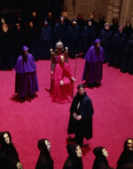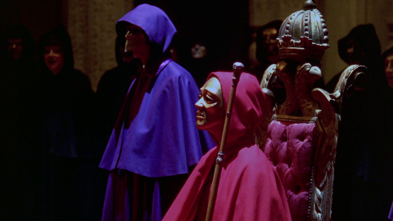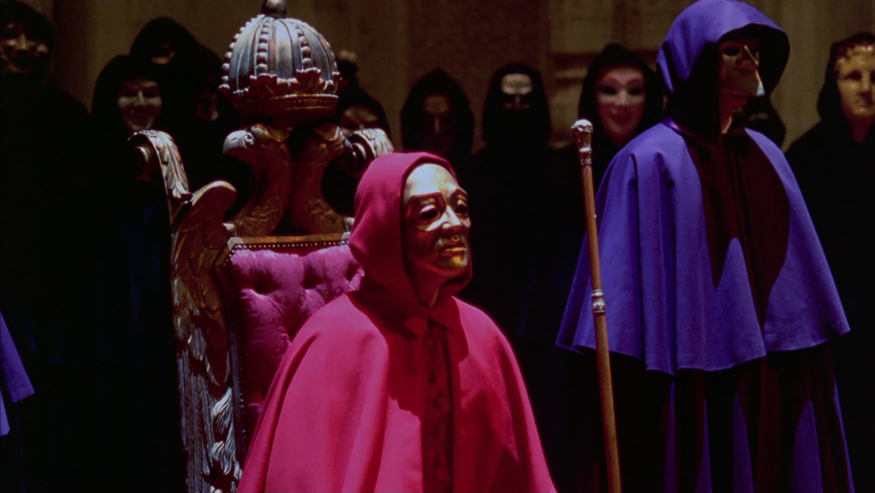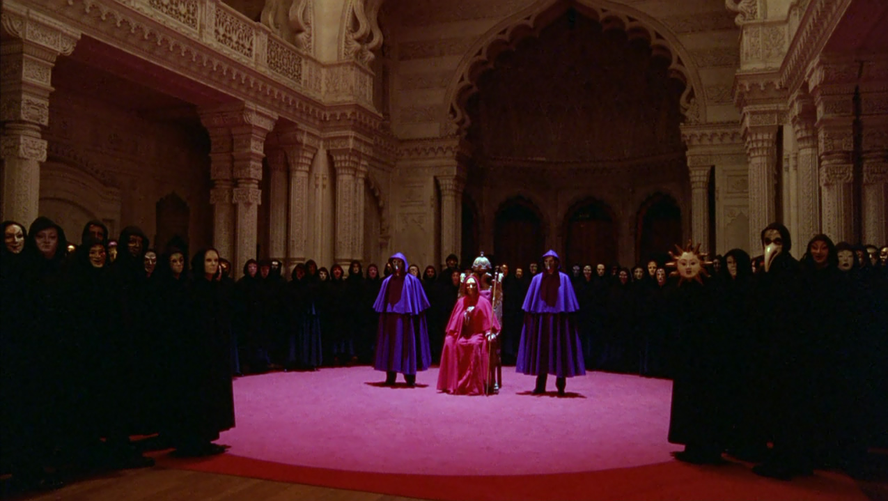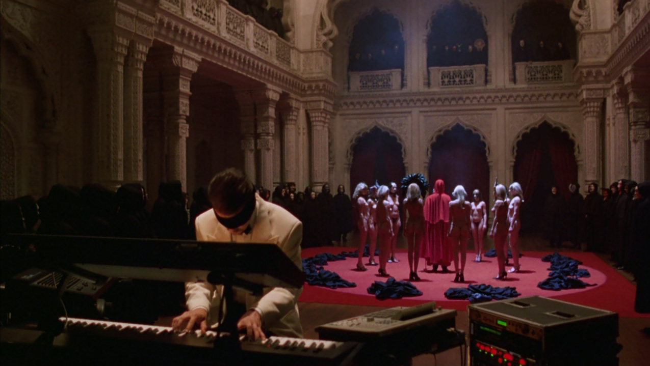 Una volta ottenuto il costume, Bill in taxi raggiunge finalmente una sontuosa villa dove assiste al convito, caratterizzato da una bizzarra funzione con officiante e baccanti nude, tutti rigorosamente con il volto coperto da maschera. L’atmosfera è inquietante, Nick suona l’organo con gli occhi bendati, accompagnando un canto-parlato maschile che risuona cupamente nel salone. Nelle altre sale Bill assiste a scene di accoppiamenti di ogni tipo quando una delle vestali lo avvicina ammonendolo del grave pericolo che corre assistendovi e pochi istanti dopo, infatti, viene portato al cospetto della loggia per essere interrogato dal celebrante, e viene smascherato come intruso. La donna inaspettatamente interviene offrendosi di espiare al suo posto e ottenendo che egli venga allontanato dalla villa senza danni, a condizione di non rivelare a nessuno quanto visto.
