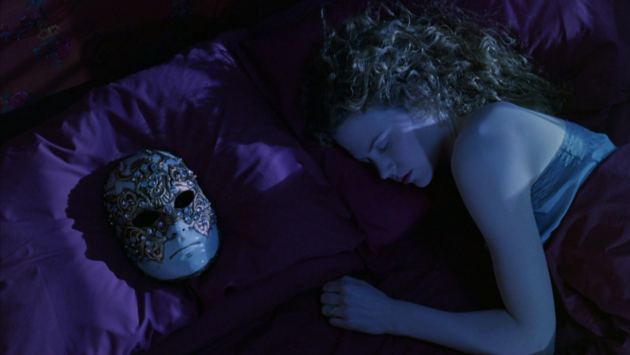 Tornato a casa a tarda sera Bill ritrova la moglie che dorme accanto alla maschera da lui indossata la notte precedente e piangendo le racconta tutto. L’epilogo si svolge in un grande magazzino a Natale, dove è Alice a concludere, con parole quasi identiche a quelle del libro, dicendo che “è un bene essersi destati dai propri sogni e che sarà meglio rimanere svegli a lungo“, aggiungendo che la sola cosa che resta a loro due di importante da fare “è scopare”.