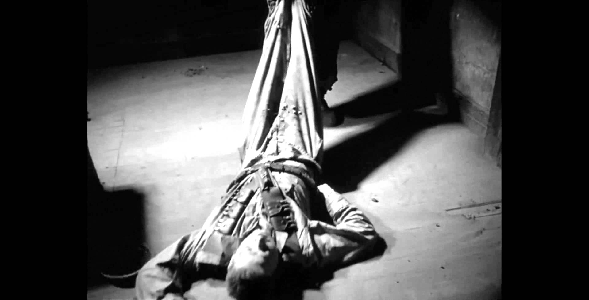 Una voce off ci avverte che i fatti si svolgono in un luogo e in un tempo indefiniti, mentre è corso una guerra. Che i quattro militari, dispersi in un territorio ostile, parlino in inglese è solo un artificio per consentire allo spettatore di comprenderli. Il tenente Corby e i soldati Fletcher, Mac e Sydney sono i superstiti dell’equipaggio di un aereo militare abbattuto e precipitato su una foresta oltre le linee nemiche. Superato lo shock iniziale, il gruppo guidato dall’ufficiale decide di ritornare alla propria base navigando sul fiume che attraversa il confine fra i due opposti schieramenti. A tale scopo, i quattro  si apprestano a costruire una rudimentale zattera. È allora che sono avvicinati da una giovane contadina che non parla la loro lingua. La ragazza viene catturata e legata a un albero con la cinghia. Uno dei soldati, mentalmente disturbato, viene lasciato da solo a guardia della ragazza, la stuzzica e sembra volerla possedere.  Quando la poveretta fugge , il suo inseguitore le spara mentre recita brani de La tempesta di Shakespeare. Un secondo soldato convince il comandante a usare la zattera per una missione volta a uccidere un generale nemico in una base vicina. Gli altri due militari raggiungono con successo l’obiettivo. Quando arrivano davanti al generale e ai suoi attendenti e li massacrano, si accorgono che le fattezze dei cadaveri sono le loro.
