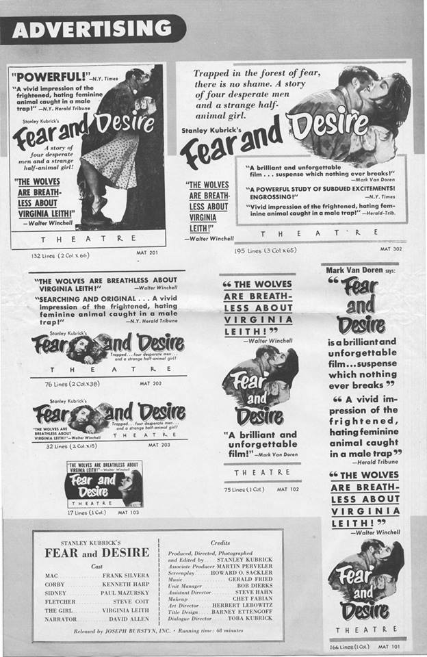 Prima edizione italiana del 2013 in Blu-ray del lungometraggio d’esordio restaurato di Stanley Kubrick. Questa edizione della RaroVideo, insieme a Fear and Desirecontiene 2 cortometraggi documentaristici girati da Kubrick in quei primi anni di carriera: Day of the Fight  (Stati Uniti, 1950/51), scritto e diretto da Kubrick che prese spunto dal proprio reportage fotografico pubblicato dalla rivista Look, interpretato dai pugili Walter e Vincent CartierBianco e nero, 16 minuti; The Seafarers  (Stati Uniti, 1953), diretto e fotografato da Kubrick, da un soggetto di Will Chasan. Bianco e nero, 30 minuti. Il Booklet di 16 pagine in bianco e nero e a colori allegato a questo Blu-ray contiene gli scritti: Stufato freddo in un’isola infuocata – Il primo Kubrick, dalla fotografia al cinema di Bruno Di Marino; Paura e desiderio sotto il vulcano di Enrico Ghezzi; Pensieri critici (Richard Combs e Vincent Lo Brutto); Biografia di Stanley Kubrick.
