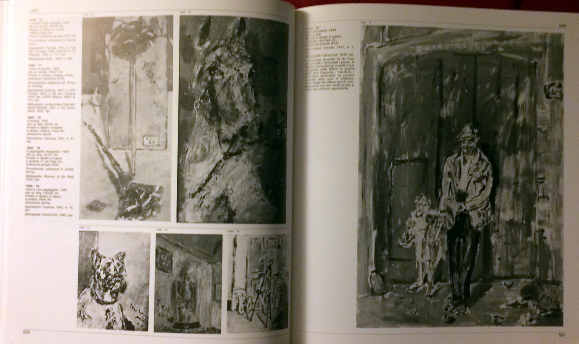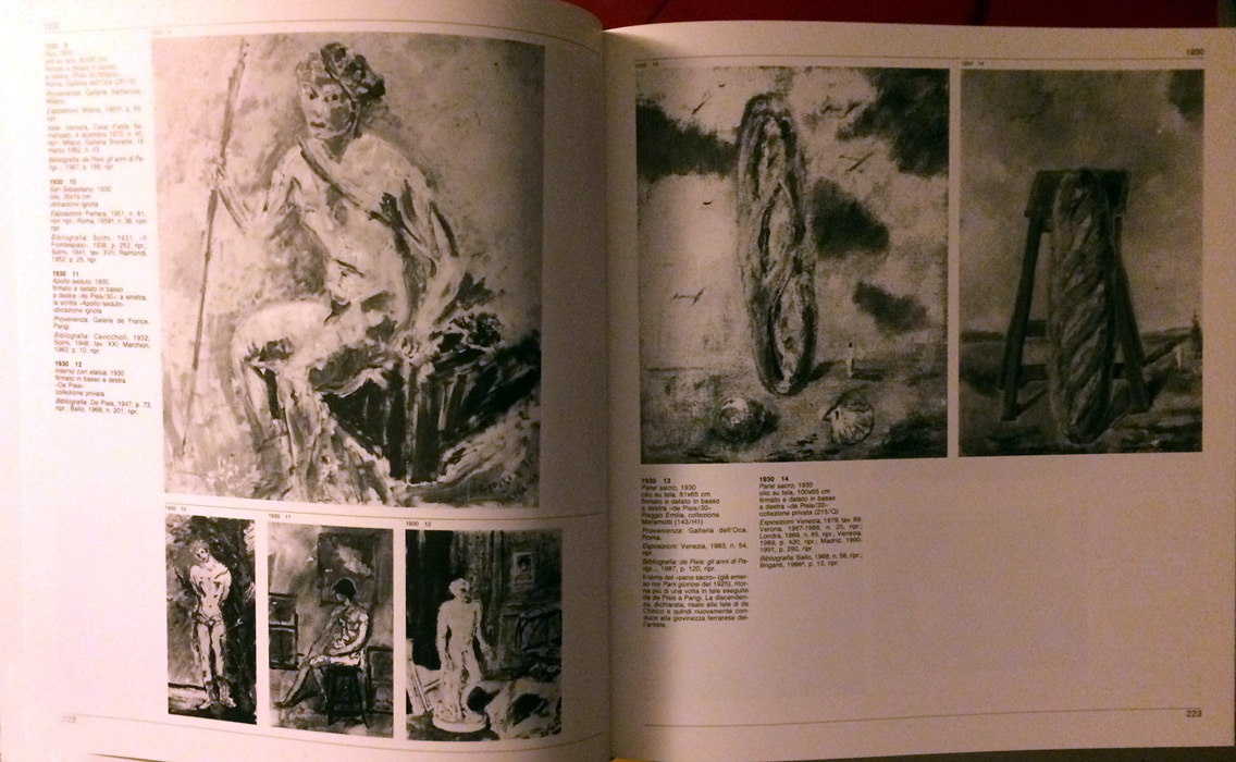 « (…) Per De Pisis dipingere era come respirare, era una condizione permanente, uno straordinario trasporto, un bisogno prepotente di abbandonarsi all’istinto, uno slancio verso “la Pittura” e quello che in esso vive e respira nell’aria e nella luce. “Vedi, a me piace solo far l’amore” diceva a Piovene per spiegargli cosa gli piacesse di più nella vita: far l’amore con la folla delle strade, con gli alberi, con i fiori, con i colori, con il piatto portato in tavola e con la persona che lo serve; con tutto quello che poi dipingeva insomma. Dipingere era come fare l’amore: una pittura così sensuosamente legata allo scorrere di una vita dominata dall’eros, di una vita fatta di estroversioni e di smarrimenti, di sicurezze istintive e di fragilità, seguiva fatalmente, di quella vita, le alterne vicende, i momenti luminosi i felicità esistenziale e di esaltazione così come le depressioni, le distrazioni, la stanchezza inventiva, i momenti opachi. L’artista, in tal modo, poteva cedere alle facili lusinghe del ripetitivo, cadere nella superficialità, persino nella sciaterisa, smarrire, insomma, quella preziosa pierre de touche che gli faceva riconoscere con certezza l’oro de la bonne peinture, perdere quel controllo istintivo, quel senso della qualità, quel lirismo d colori che, nei momenti felici, era indissolubilmente legato alla sua snatura creativa. Sì, poteva succedere, se pur non sovente, soprattutto negli anni che seguirono il lungo soggiorno parigino, nei tristi anni di Villa Fiorita durante i quali però, in momenti di lucida disperata malinconia, dipinse alcuni capolavori. (…) De Pisis non ebbe mai un mercante fisso: non lo ebbe negli anni di Milano e di Venezia sebbene in quelle città avesse intrecciato con più di un mercante attivi rapporti. Vendeva molto spesso i suoi quadri agli amici che andavano a trovarlo, soprattutto letterati e poeti, o agli amici degli amici o a clienti occasionali. Molti li regalava, molti li dimenticava magari in un armadio, molti se li faceva portare via da ragazzi di vita. A parte gli amici letterati, come Palazzeschi, Montale, Comisso, che raccolsero alcuni dei suoi più bei dipinti, ci furono anche numerosi collezionisti amici che lo amarono e lo stimarono (come, per fare solo un esempio, il principe Leone Massimo), che di suoi dipinti ne misero insieme un numero notevole. Ma alcune di quelle belle collezioni si sono disperse mentre altre, nuove, se ne sono formate. (…) »