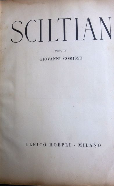Prima edizione della monografia di Gregorio Sciltian con lo scritto di Giovanni Comisso «Gregorio Sciltian alla sua maniera», finita di stampare il 12 luglio 1942 per Ulrico Hoepli Editore di Milano.