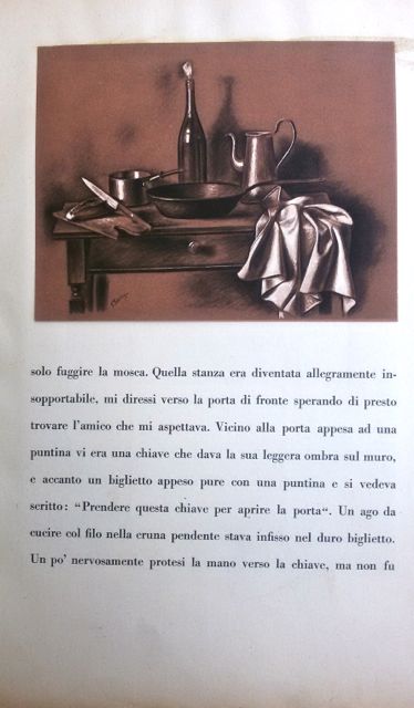 Caratteristiche:  Legatura in cartone rinforzato con titoli in nero. All'interno 34 tavole applicate a colori e in nero, a piena pagina e nel testo di opere di Gregorio Sciltian