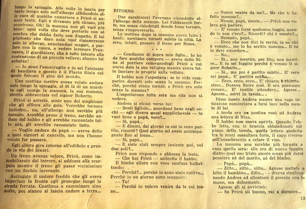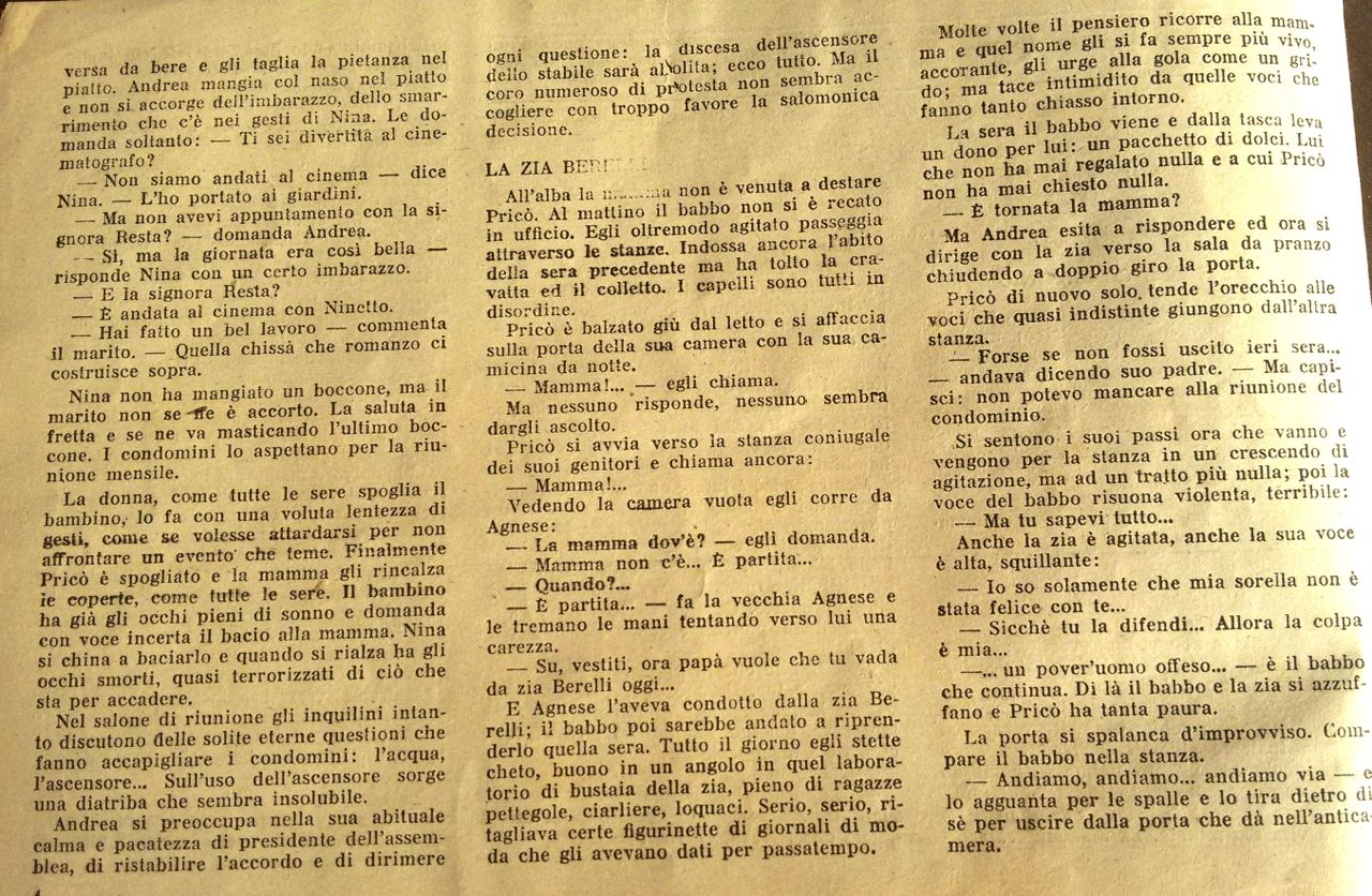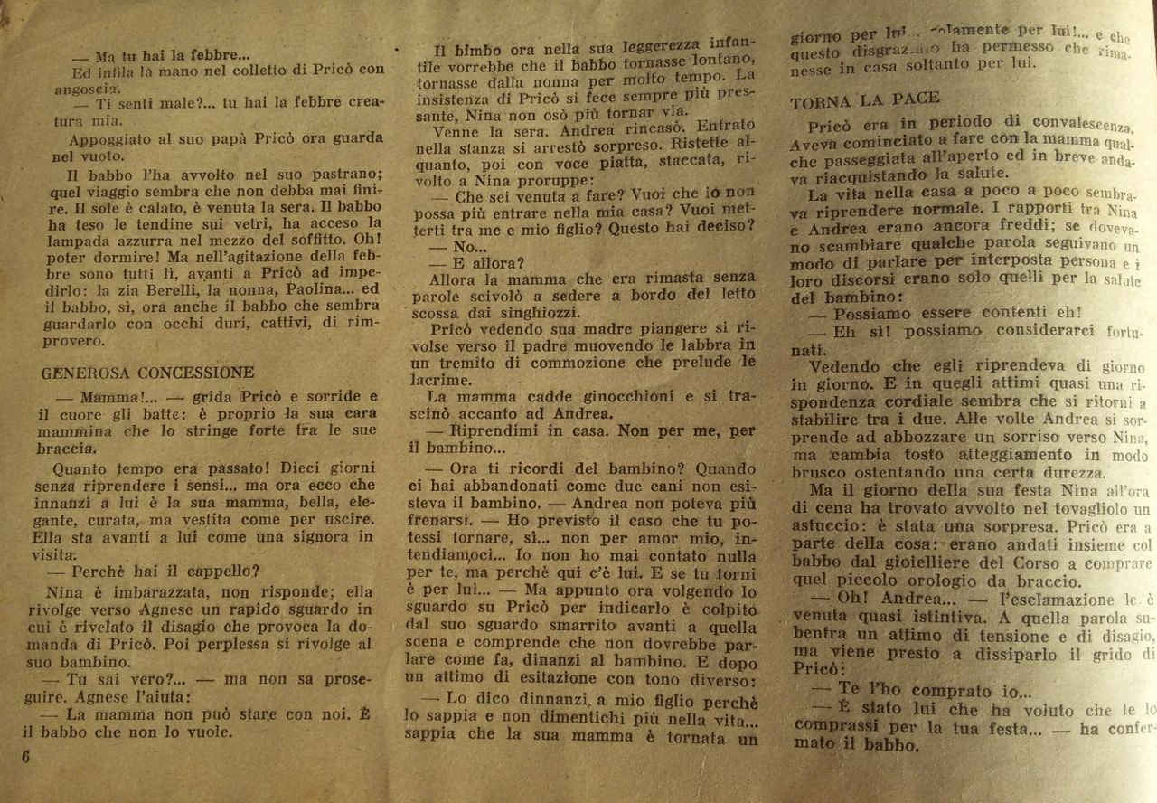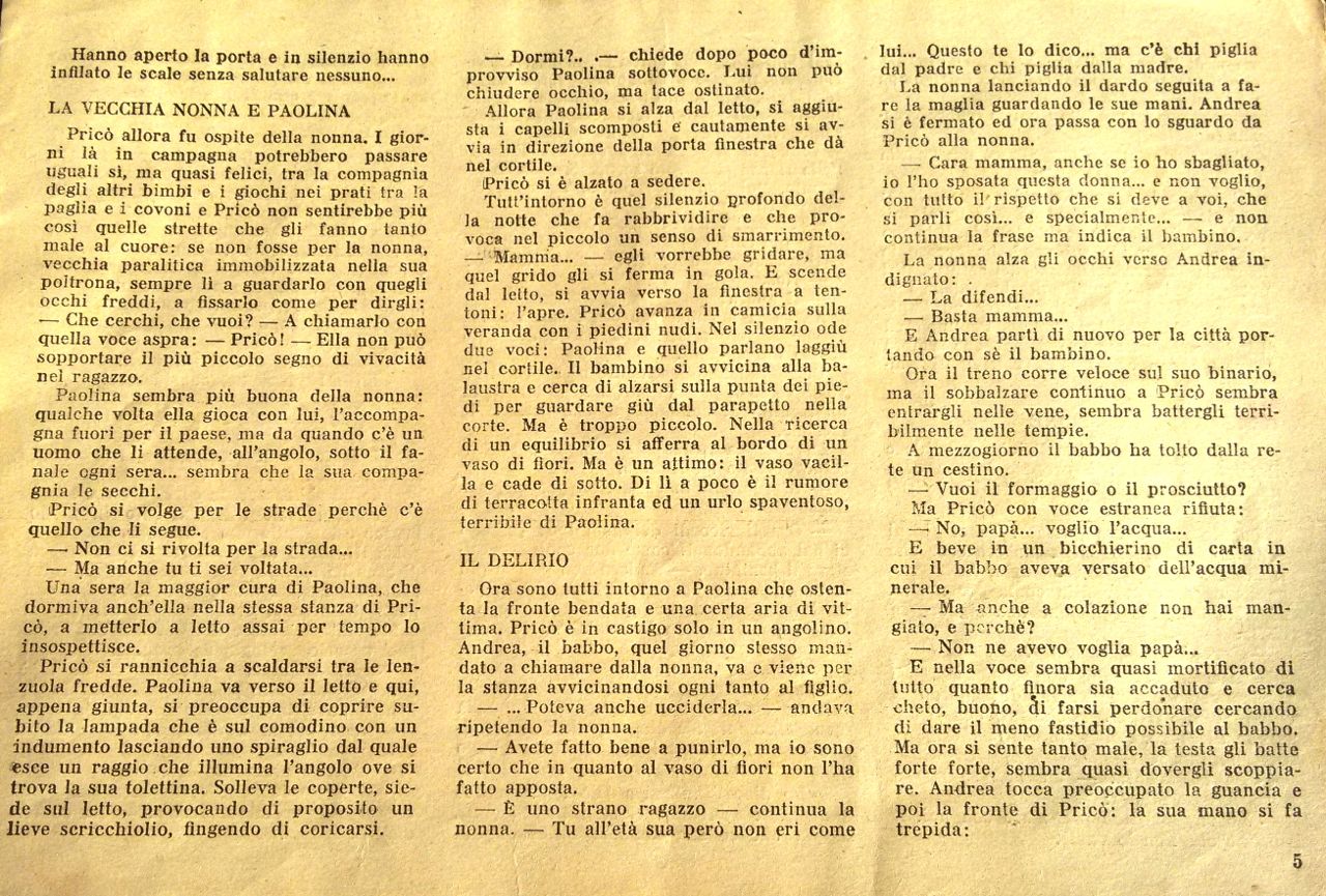 Pricò si reca in campagna dalla nonna paterna affezionandosi a Paolina. Un vaso che egli lascia cadere sul capo della ragazza provoca i furori della nonna, che vede in lui l’esempio negativo della madre.