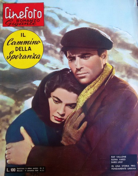 Prima edizione del cineromanzo a fumetti tratto dal film Il cammino della speranza (1950) di Pietro Germi. Il cineromanzo, illustrato dai fotogrammi del film, è stato pubblicato dal mensile «Cinefotoromanzo Gigante» (n.21 del 1°novembre 1956), direttore Edoardo Rovelli, Editrice «La Torraccia» di Roma.