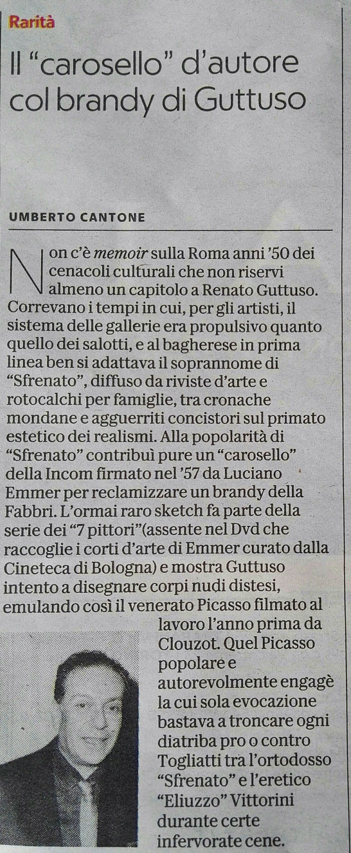 Il “carosello” d’autore col brandy di Guttuso