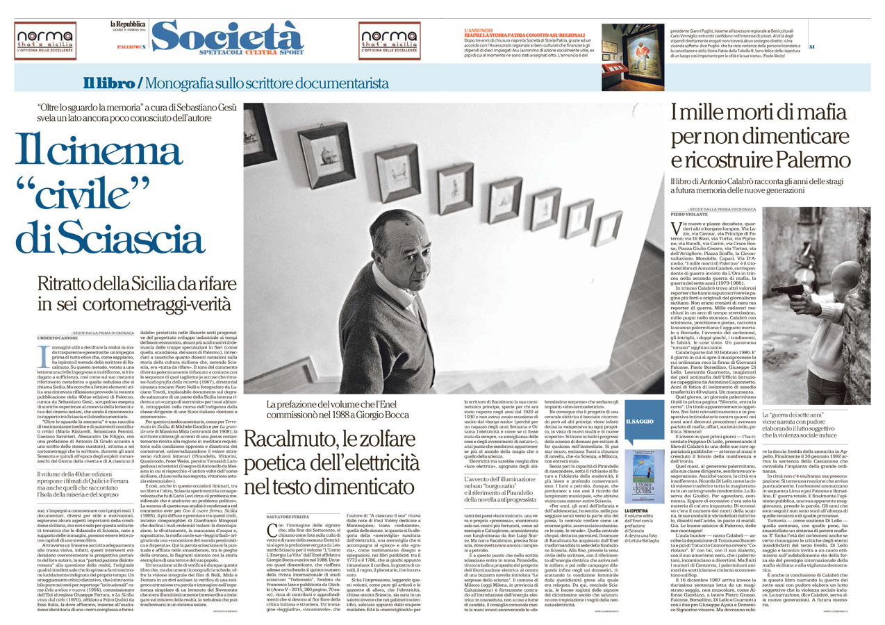 Per questo cinedocumentario, come per Terremoto in Sicilia di Michele Gandin e per La grande sete di Massimo Mida (entrambi del 1968), lo scrittore utilizza gli accenti di una pietas costantemente rivolta alla ragione in meditate requisitorie sulla condizione oppressa e disastrata dei conterranei, universalizzandone il valore attraverso richiami letterari ( Pirandello, Vittorini, Quasimodo, Peter Weiss, persino Tomasi di Lampedusa) ed estetici (il segno di Antonello da Messina in cui si rispecchia “l’antico volto dell’uomo siciliano, chiuso nella sua segreta, vittoriosa astuzia esistenziale”). E così, anche in queste occasioni liminari, tra un libro e l’altro, Sciascia sperimentò la consapevolezza che fu di Carlo Levi circa “il problema meridionale che è anzitutto un problema politico”. La summa di questa sua analisi è condensata nel commento over per Con il cuore fermo, Sicilia (1965), il più diffuso e premiato tra questi titoli, incisivo cinepamphlet di Gianfranco Mingozzi che declina i mali endemici isolani: la disoccupazione, lo sfruttamento, la mancanza d’acqua e, soprattutto, la mafia con le sue “leggi tribali” originate da una “concezione del mondo pessimistica e disperata”. Qui la parola sciasciana si fa puntuale e affilata nello smascherare, tra le pieghe della cronaca, le flagranti sintonie con la storia esemplare di una terra e del suo popolo. Un’occasione utile di verifica è dunque questo libro che, tra documenti iconografici e schede, offre la visione integrale dei film di Nelli, Mida e Ferrara in un Dvd accluso: la verifica di una reciproca attrazione tra parola e immagine nell’esperienza singolare di un letterato del Novecento che si era illuministicamente intestardito a indagare sul mistero della realtà, la nebulosa che può trasformarsi in un sistema solare.