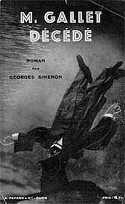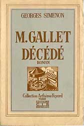 Prima edizione italiana di Monsieur Gallet décédé , n.6 della collana mondadoriana I Romanzi Polizieschi di Georges Simenon (I Libri Neri). Il romanzo è tradotto da Guido Cantini che è pure il curatore della collana.