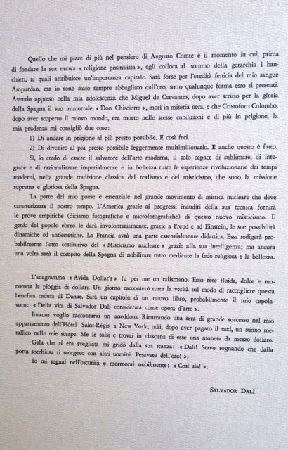 Io, Salvador Dalì. Uno scritto autobiografico e 10 tavole a colori fuori testo – 1954