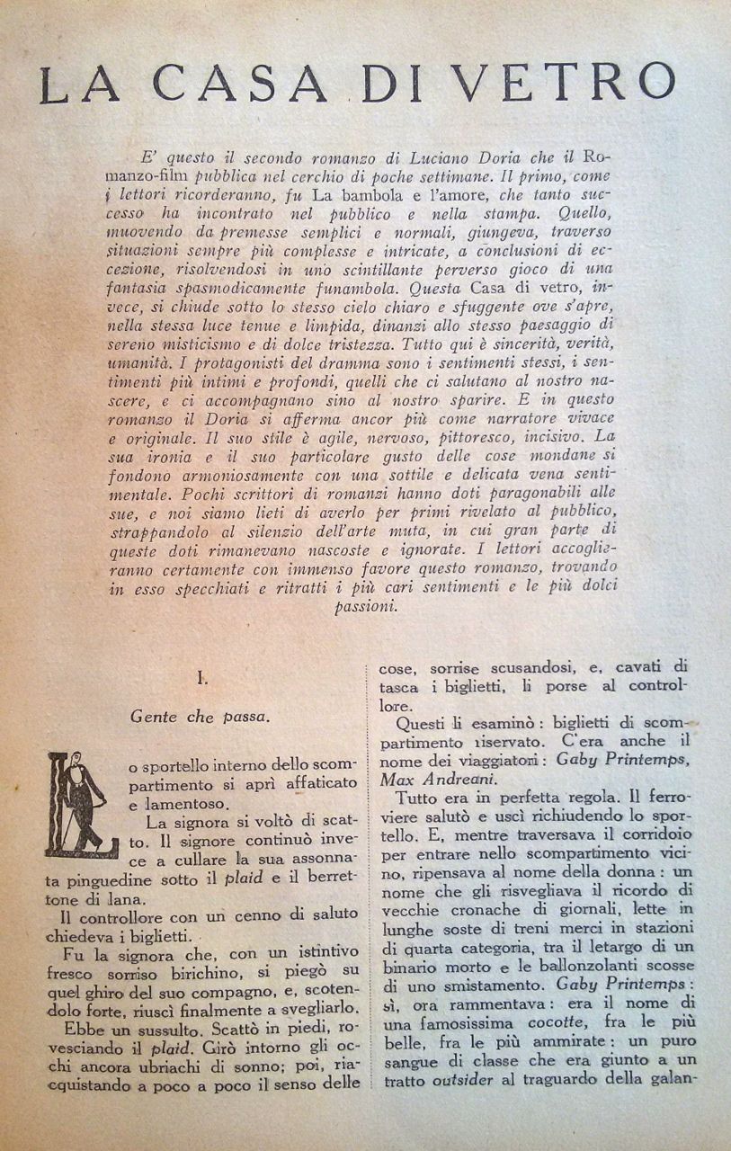 La casa di vetro – Cineromanzo di Luciano Doria dal film omonimo del 1920 di Gennaro Righelli, in “Il Romanzo film”, Anno II, n.2, 15 gennaio 1921