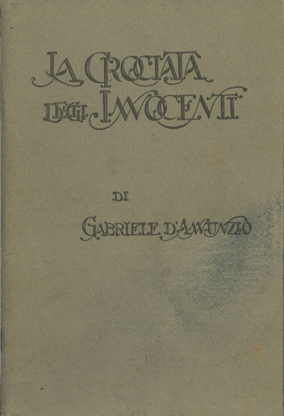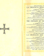 Raro opuscolo del film La crociata degli innocenti (1917) con la sceneggiatura di Gabriele D’Annunzio tratta dal proprio omonimo testo teatrale. L’opuscolo, edito dalla Musical Films, da Renzo Sonzogno e dalla Pax Film che aveva prodotto la pellicola uscì nei primi mesi del 1918, quando il film venne distribuito nelle sale italiane e francesi. Oltre al testo di D’Annunzio, questo libretto di sala contiene 13 fotografie di scena in bianco e nero del film “messo in scena da A.Bouet e A.Traversa” di cui non esiste più alcuna copia né il negativo.