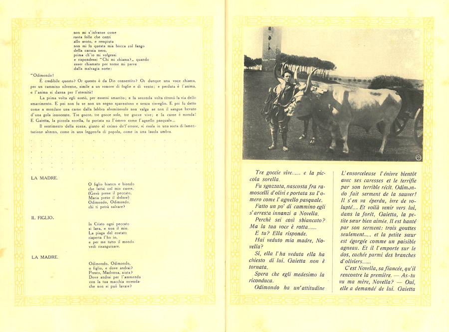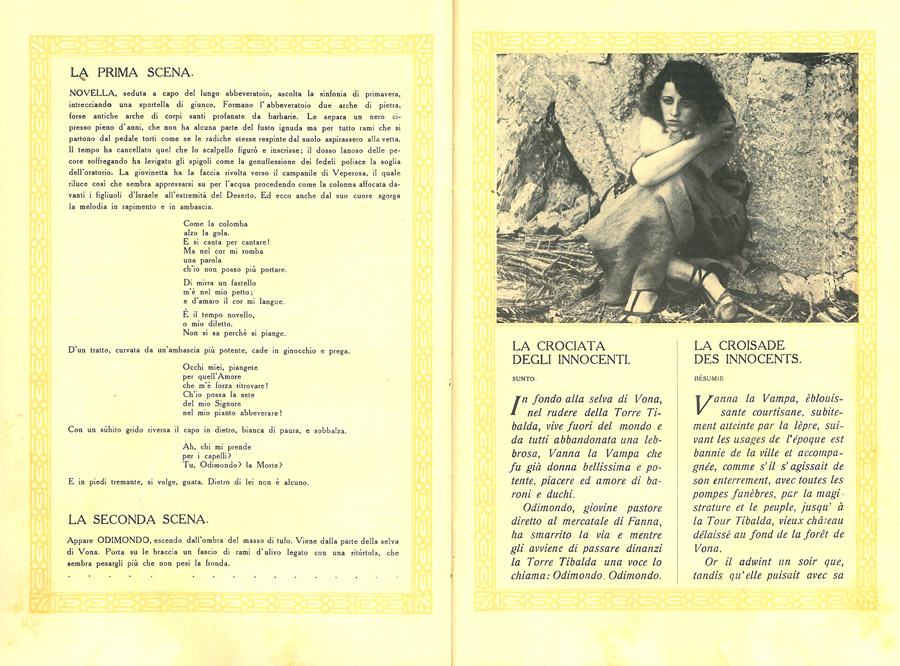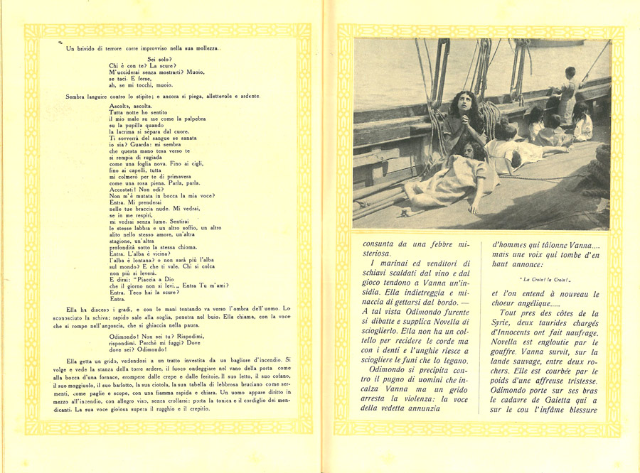 Tipologia:  Brochure cinematografica con il testo del dramma di D'Annunzio in italiano e in francese