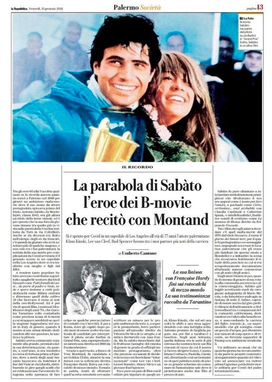 Home » Press » La parabola di Sabàto, l’eroe dei B-movie che recitò con Montand – In memoria di Antonio Sabàto