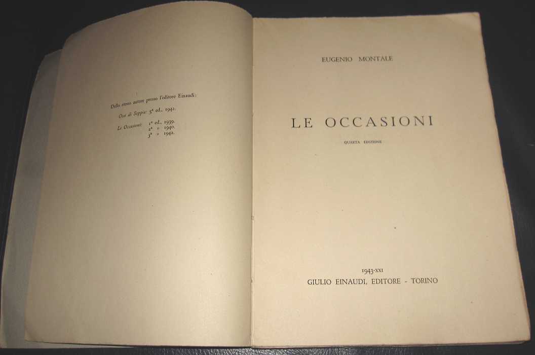 Quarta edizione Einaudi (del 10 marzo 1943) della celebre raccolta poetica di Eugenio Montale.