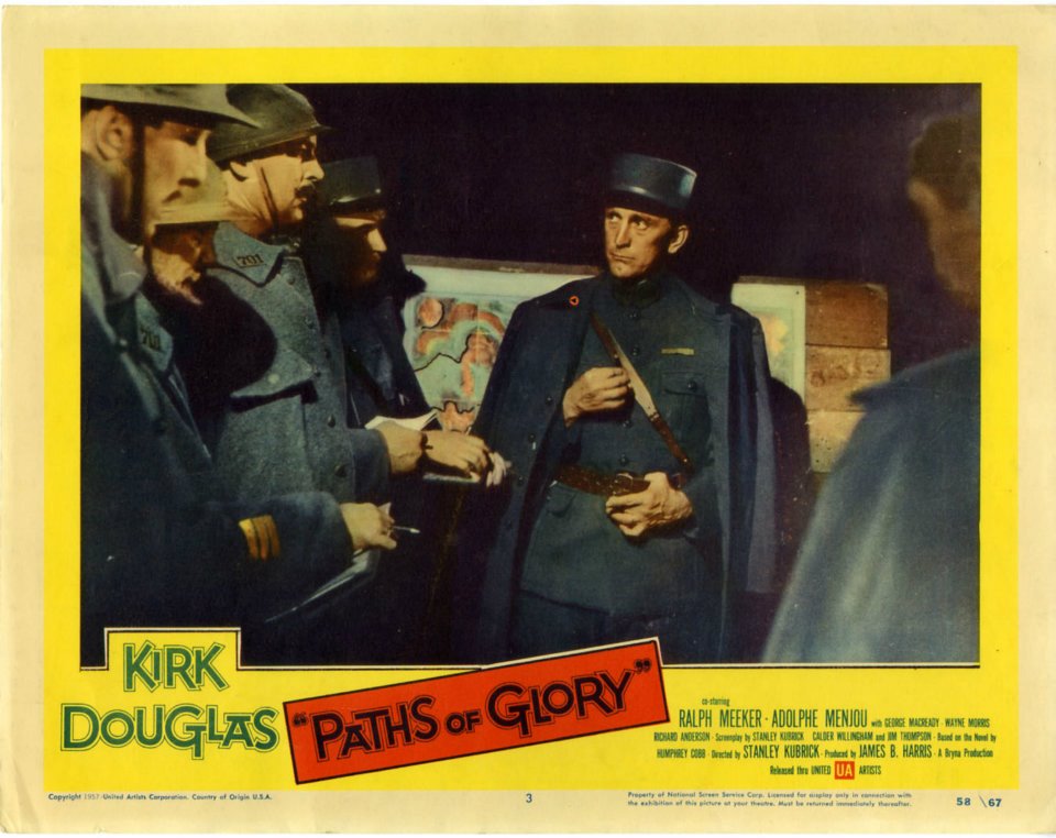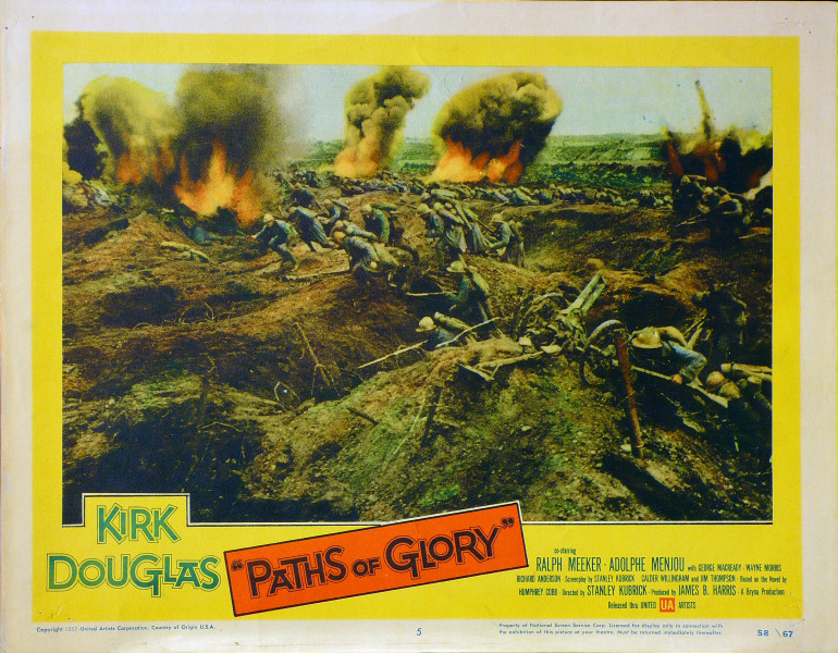 Film di riferimento:  Paths of Glory (Stati Uniti, 1957) di Stanley Kubrick. Sceneggiatura di Stanley Kubrick, Calder Willingham, Jim Thompson, dal romanzo omonimo di Humphrey Cobb. Fotografia di George Krause. Musica di Gerald Fried. Con Kirk Douglas, Ralph Meeker, Adolphe Menjou, George Macready, Wayne Morris, Richard Andeson, Joseph Turkel