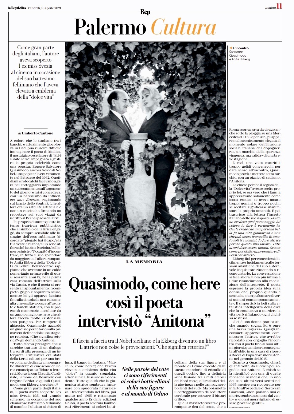 Quasimodo, come here : così il poeta intervistò Anitona, in la Repubblica/Palermo