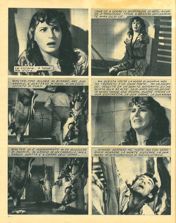 Senza che nessuno possa fermarla, la ragazza esce dalla macelleria e si arrampica sull’ impalcatura predisposta per il ballo. Francesca la segue, ma è troppo tardi: Silvana si getta nel vuoto.