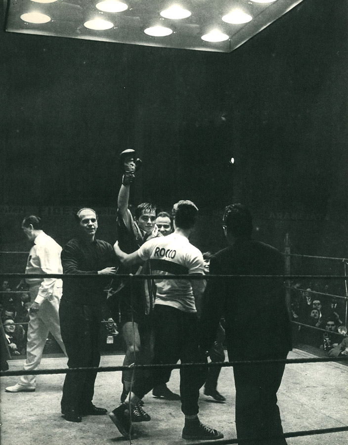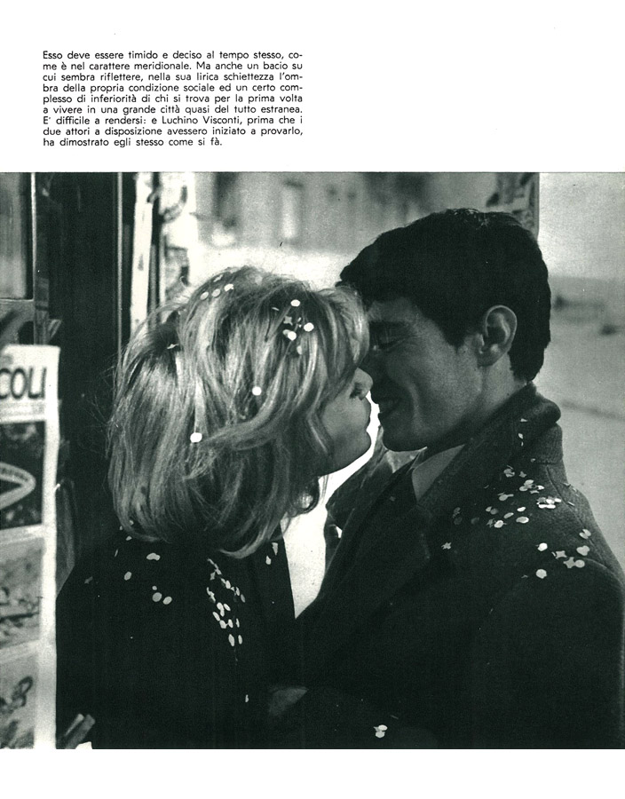 Film di riferimento:  "Rocco e i suoi fratelli" (Italia/ Francia,1960) di Luchino Visconti. Soggetto di Luchino Visconti, Vasco Pratolini e Suso Cecchi d'Amico, da "Il ponte della Ghisolfa" di Giovanni Testori. Sceneggiatura di Luchino Visconti, Suso Cecchi d'Amico, Pasquale Festa Campanile, Massimo Franciosa, Enrico Medioli. Fotografia di Giuseppe Rotunno. Musica di Nino Rota. Con Alain Delon, Renato Salvatori, Katina Paxinou, Annie Girardot, Roger Hanin, Paolo Stoppa, Suzy Delair, Claudia Cardinale, Corrado Pani, Adriana Asti, Claudia Mori
