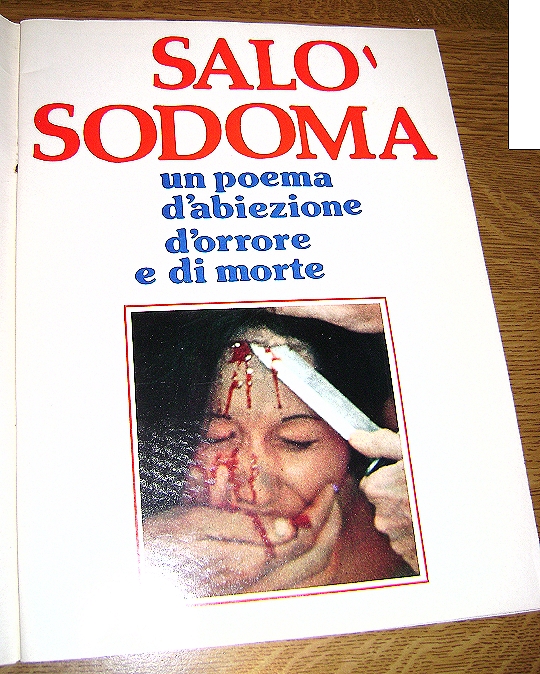Nel frontespizio interno è riportata la dicitura: «SALÒ-SODOMA – UN POEMA D’ABIEZIONE, D’ORRORE E DI MORTE».