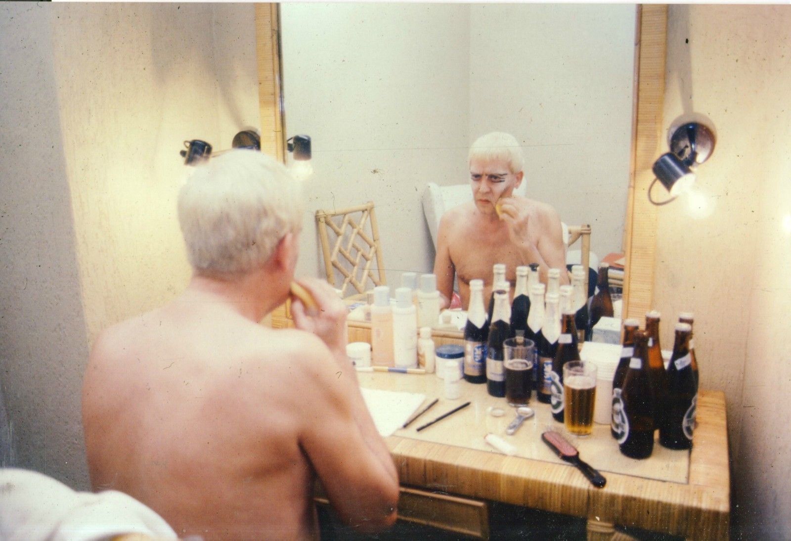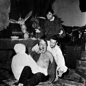 « Nel Teatro Laboratorio spiravano soffi e ventate che fatalmente molto s’imparentavano a quelli del Borgo Santo Spirito. Dopo un’attesa che a volte durava anche tre ore il pubblico era costretto a passare al “trucco”, nell’androne adiacente dove io e il signor Nistri, che vestiva sempre un ineccepibile tight e ghette alle scarpe (tutto materiale che reperiva a Porta Portese), conservando una dignità eroica, sfregiavamo ad libitum il viso agli “abbonati” che, uscendo all’intervallo, si buscavano prima enormi catinellate d’acqua condominiali sul loro snobismo voyeurismo d’accattò (sospesi tra un “mortacci vostri” e “… però carino, stravagante, questo posto…!”) e poi andavano al bar attiguo e si vedevano allo specchio pittati da strapazzo, sicché non potevano criticar nulla o trinciare il repertorio dei loro valori, perché derisi comunque da quel trucco che li cancellava.