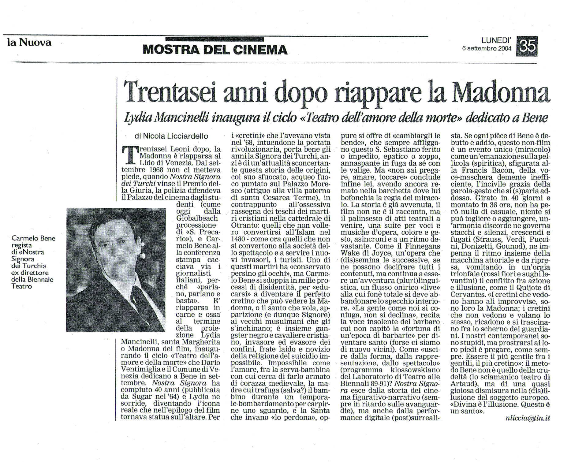 « V’ è una nostalgia delle cose che non ebbero mai un cominciamento. Affondare la propria origine – non necessariamente connessa con la nascita – in terra d’Otranto è destinarsi un reale-immaginario. E lì appunto, nel primo dì d’un settembre io fui nato. Otranto. Da sempre magnifico, religiosissimo bordello, casa di cultura tollerante confluenze islamiche, ebraiche, arabe, turche, cattoliche. » Tale l’ incipit di questo quasi-diario di quasi una vita o di una quasi-vita, se, come dice Bene, la sua pur sintetica autobiografia si fonda sul proprio non- esserci, sull’abbandono, sulla mancanza. Otranto è la culla delle storie estromesse, il lutto oltremare. Lì ci si trova immersi in qualcosa che mai ebbe inizio: un’etnia sposata a una vita immaginaria. Da inventare. Per un’autobiografia rischiosissima, immaginaria e reale a un tempo. Ed ecco Bene quattrenne palleggiato da una montagna di donne “d’ogni forma” e “d’ogni età” (le tabacchine di Campi Salentina), la chiesa con le madonne di cartapesta degli artigiani leccesi, gli scolopi, i salesiani, i gesuiti, il latino e il greco antichi, il servir messa; poi, dallo stupore dell’infanzia, Roma, l’Università, le lezioni trascurate, l’apprendistato teatrale, le notti ubriache, in smoking, strangolando colli di bottiglie vuote, le permanenze notturne nei commissariati di zona. Ecco le donne, gli amici, le polemiche; ecco Di Stefano, Eduardo, Dalì, Montale, Klossowski, Lacan, Deleuze. Ed ecco che il rifiuto di esser nella storia, in qualunque storia, anche e soprattutto in scena, induce Carmelo Bene a dar avvio a un teatro che ha inizio «là dove non c’era più nulla da dire, ovvero ‘tutto da essere detti’»; a scendere in campo, in scena, ricercando «nel ‘piano di ascolto’ del ‘dire’ tutte le storie estromesse da quell’unica storia verificatasi e dalla quale ci si esclude »; a compiere cioè quella “rivoluzione” teatrale “copernicana” che raggiungerà il suo culmine col Macbeth: dalla fine del teatro al teatro della fine, alla «fine d’ogni teatro del possibile ». »