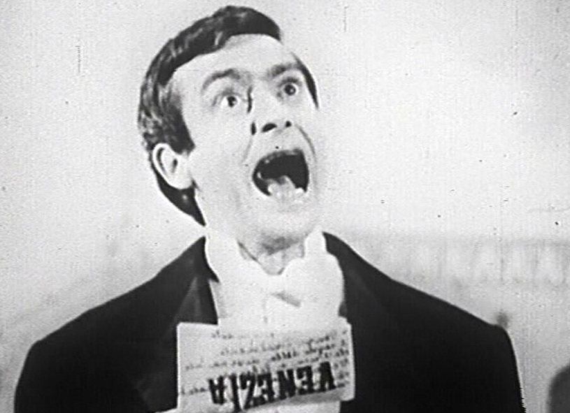 All’“enfant terrible” che l’esecuzione immacolata e argentea del precedente “Marlowe” m’aveva procurato, s’aggiunge adesso (fonte fatale d’equivoci corrente tuttavia sul “mio teatro”) – è d’ascriversi a Flaiano anche questa – tutta per me coniata voce scenica, “dissacrazione”, nel senso, è ovvio, demistificante. Macché! Dagli a spiegarsi, traducendo quel detto di tant’Ennio nazionale. Macché! Niente da fare. Eccomi Simon Mago, una volta per tutte, profanatore del testo-altarino, e “L’inferno – l’eterno caldo e freddo dell’idiozia totale addetta e no ai lavori – è certo”.