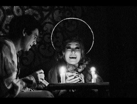Partorita da spensierata sofferenza – poche ore di prova in compagnia di Franco Citti, “Battista” straordinario, e d’Alfredino Leggi, allora ospiti del carcere mandamentale di Ceccano; e di quel Vincenti poi grande attore nelle successive edizioni d’Amleto –, gestita tra gli incensi, in rosso e oro d’accatto nei costumi; la scena, un dopoguerra di bottiglie estinte, questa Salomès’impone all’universo provincialismo romanesco e all’italietta critica, d’un balzo.