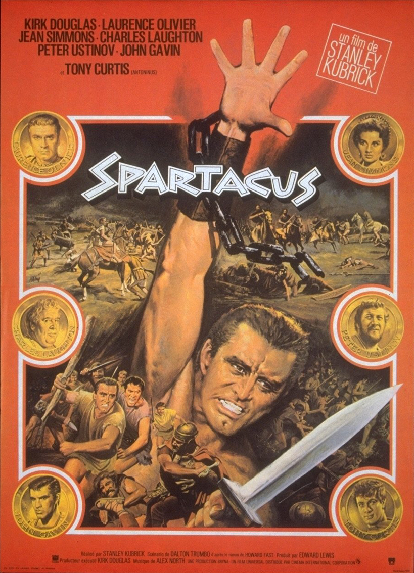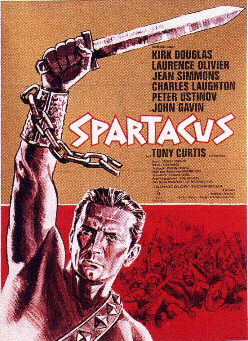 Film di riferimento:  Spartacus (Stati Uniti, 1960) di Stanley Kubrick. Sceneggiatura di Dalton Trumbo, dal romanzo omonimo di Howard Fast. Fotografia di Russell Metty. Titoli e grafica di Saul Bass. Musica di Alex North. Con Kirk Douglas, Laurence Olivier, Jean Simmons, Charles Laughton, Peter Ustinov, John Gavin, Tony Curtis, Herbert Lom