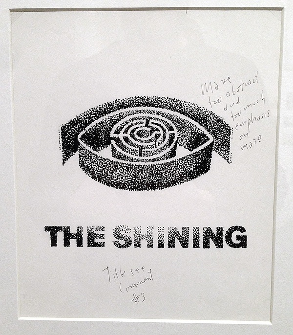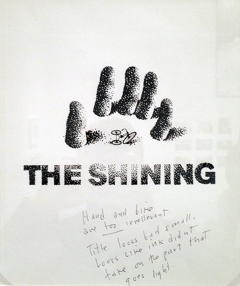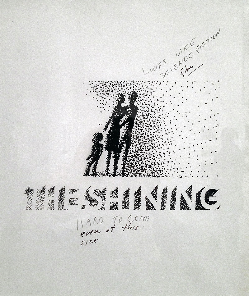 Un volto spettrale come marchio dentro il lettering del titolo in una prospettiva di fuga obliqua: l’essenziale composizione di Saul Bass fu scelta da Stanley Kubrick dopo una serie di numerose proposte da parte del celebre designer, che per lui curò la grafica dell’intera campagna pubblicitaria di Shining (Gran Bretagna/Stati Uniti, 1980). Questa composizione fa parte di una serie di lobby cards utilizzate per la promozione del film alla sua prima uscita americana.