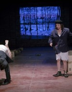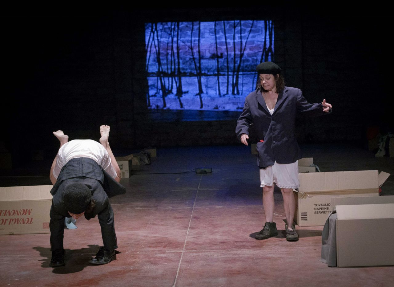 Accade tutto mentre, alle loro spalle, si ostina a scorrere il malinconico movimento di un’immagine di natura, una beckettiana finestra sul mondo.