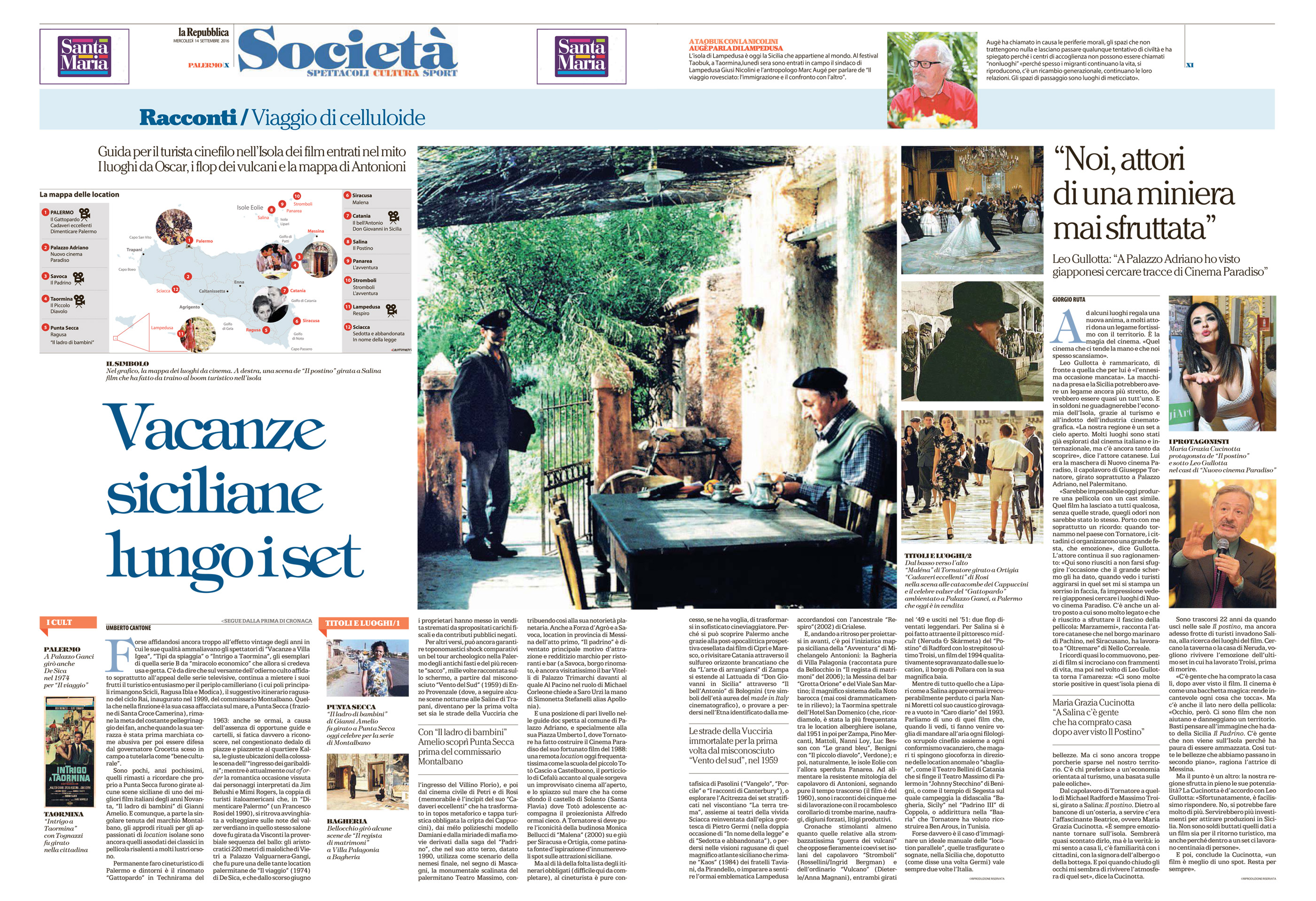 Mentre di tutto quello che a Lipari come a Salina appare ormai irrecuperabilmente perduto ci parla Nanni Moretti col suo caustico girovagare a vuoto in “Caro diario” del 1993. Parliamo di uno di quei film che, quando li vedi, ti fanno venire voglia di mandare all’aria ogni filologico scrupolo cinefilo assieme a ogni conformismo vacanziero, che magari ti spingono giocoforza in direzione delle location anomale o “sbagliate”, come il Teatro Bellini di Catania che si finge il Teatro Massimo di Palermo in “Johnny Stecchino” di Benigni, o come il tempio di Segesta sul quale campeggia la didascalia “Bagheria, Sicily” nel “Padrino III” di Coppola, o addirittura nella “Baarìa” che Tornatore ha voluto ricostruire a Ben Arous. Forse davvero è il caso d’immaginare un ideale manuale delle “location parallele”, quelle trasfigurate o sognate, nella Sicilia che, dopotutto (come ha detto una volta il grande Germi), vale sempre due volte l’Italia.