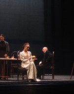 Per questo spettacolo, Carriglio ha disegnato una scatola architettonica fatta di tulle e dalle sfumature taglienti. L’intendimento è quello di liberare Čechov da ogni orpello che lo data, da Stanislavskij in poi. E per gli attori vale l’indicazione di non avere paura dei silenzi.