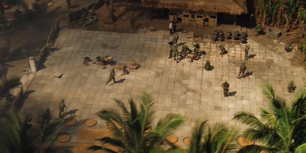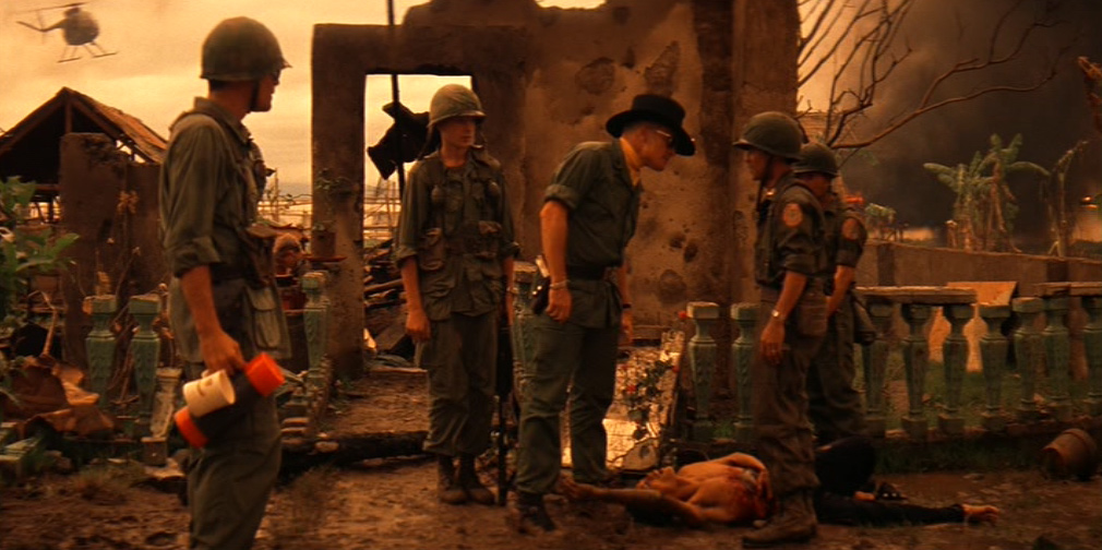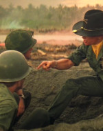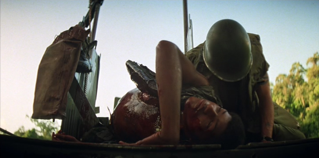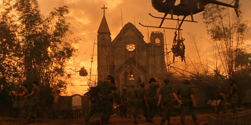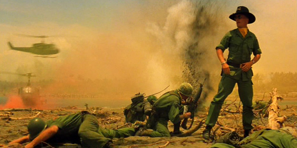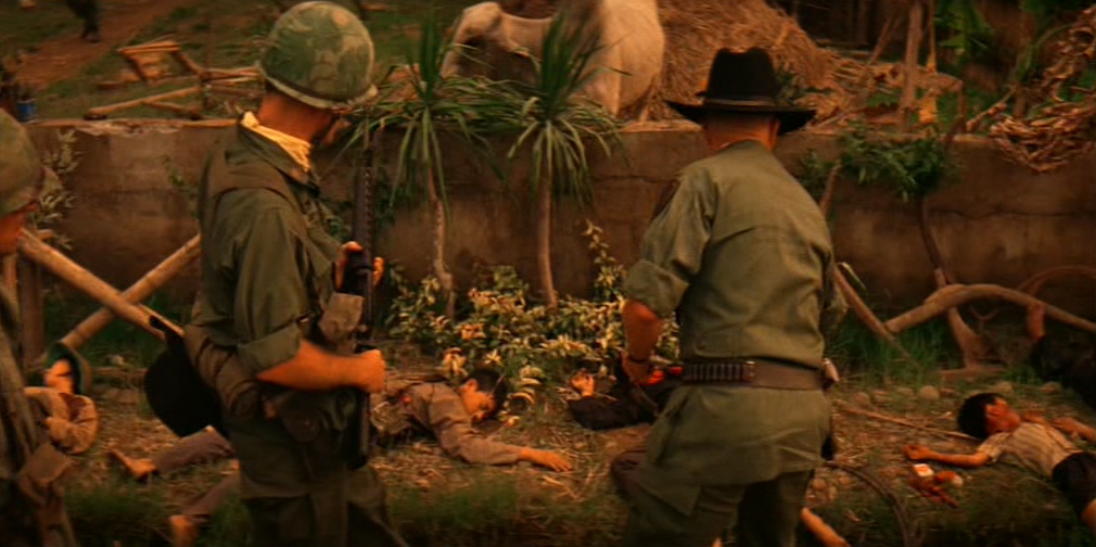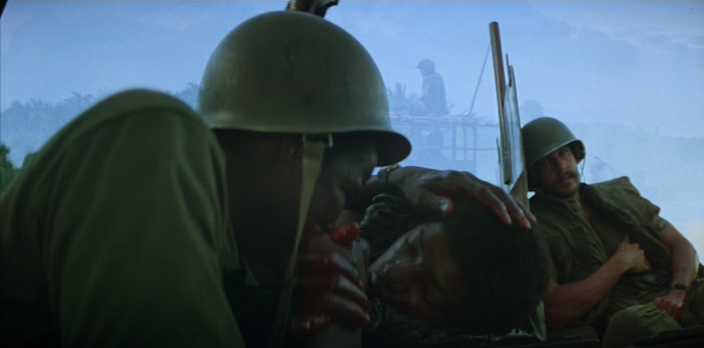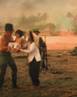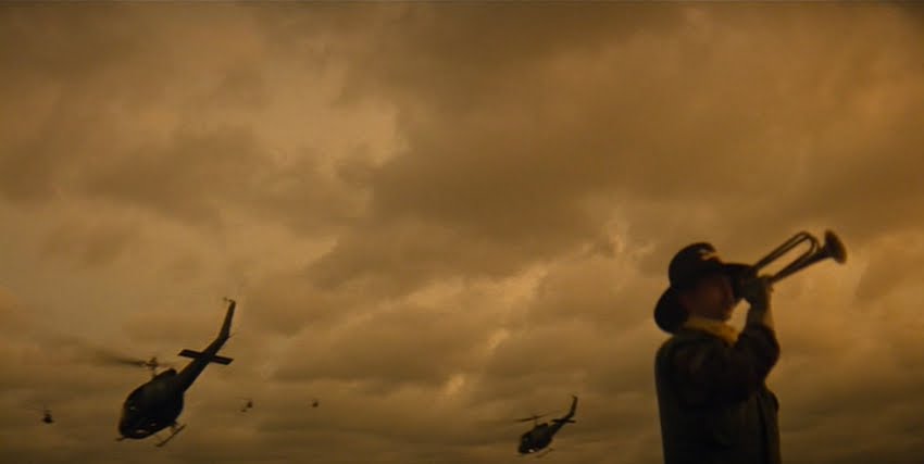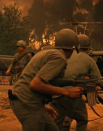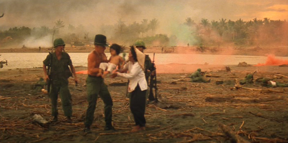 Una donna vietnamita con il figlioletto ferito in braccio si rivolge a Kilgore. Il tenente colonnello la rassicura e ordina ai suoi uomini di portare il bambino in ospedale. Ma chissà se il suo ordine verrà mai eseguito. 〉