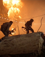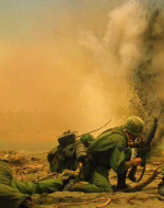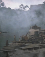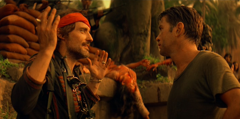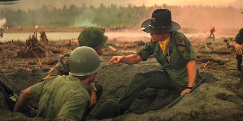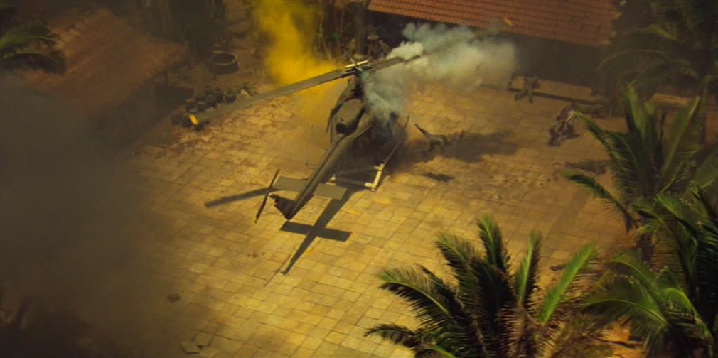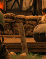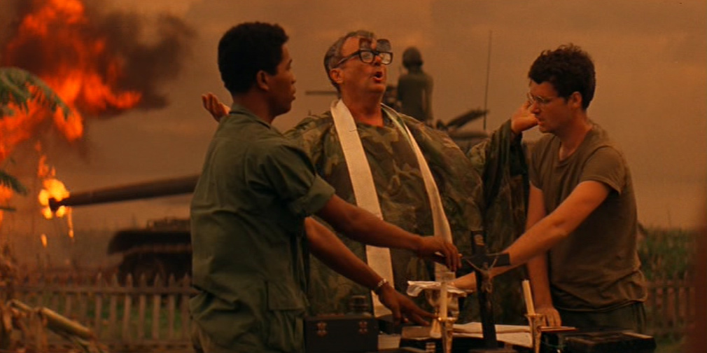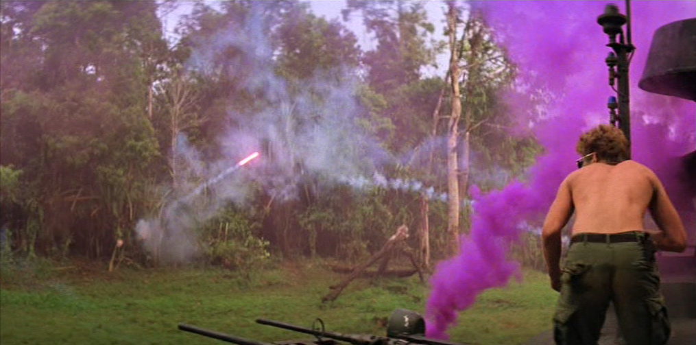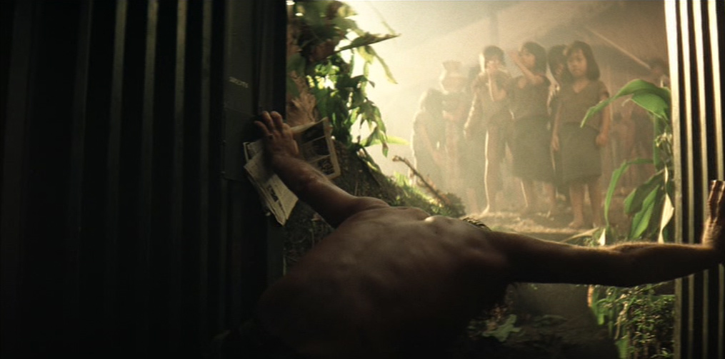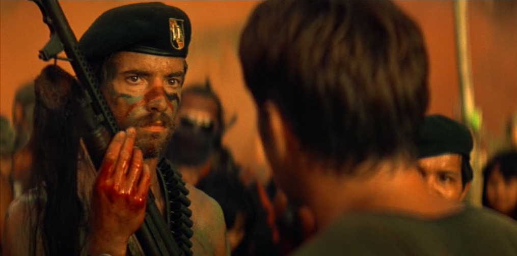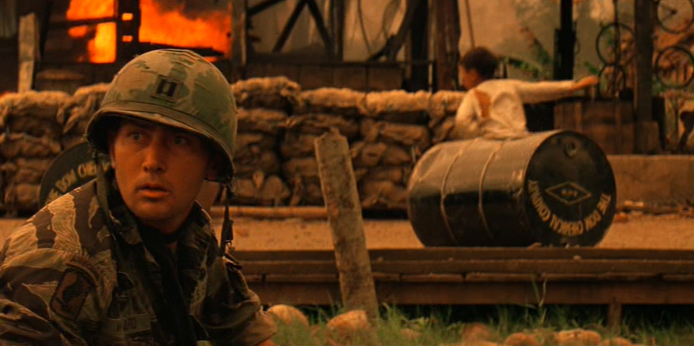 Una donna vietnamita con il figlioletto ferito in braccio si rivolge a Kilgore. Il tenente colonnello la rassicura e ordina ai suoi uomini di portare il bambino in ospedale. Ma chissà se il suo ordine verrà mai eseguito. 〉