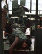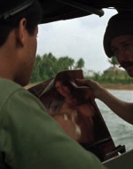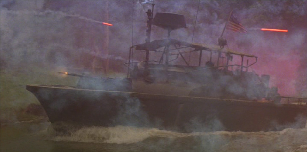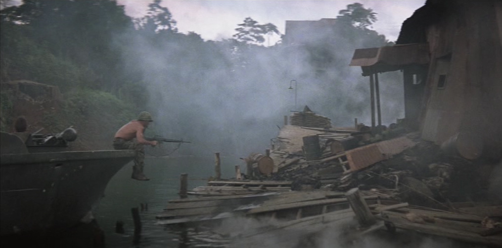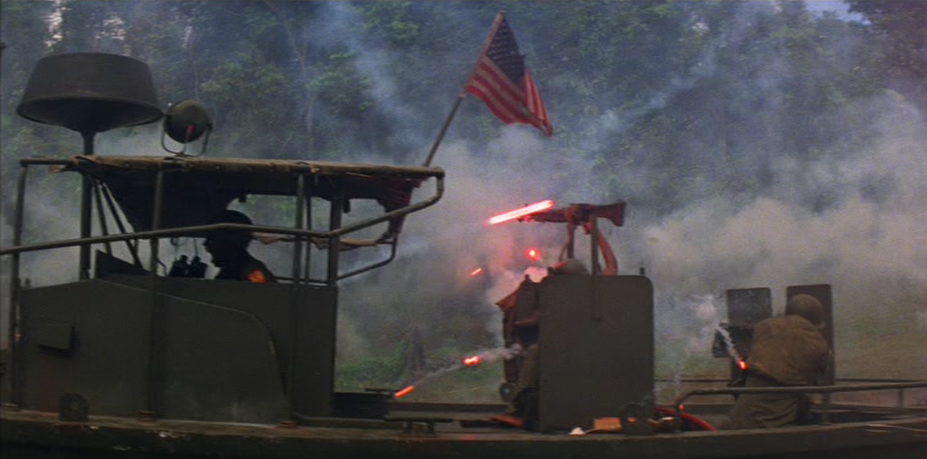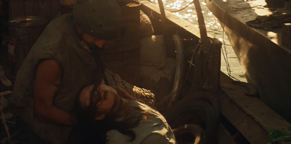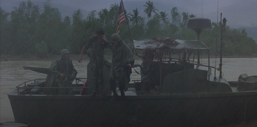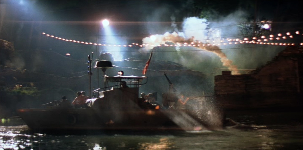Il giorno seguente, la barca incrocia un’imbarcazione sampan di commercianti vietnamiti. Phillips ordina di perquisirla per scoprire eventuali armi nascoste, in disaccordo con Willard che vuole proseguire la salita del fiume per abbreviare la missione. Mentre Chef ispeziona la nave, una ragazza si muove bruscamente in direzione di una cesta, provocando la reazione dei soldati, che cominciano a sparare alla cieca, crivellando di pallottole gli occupanti della barca sampan. Chef, nello sconforto più totale, scopre la causa del movimento inconsulto della ragazza: la cesta nascondeva un cucciolo di cane che lei voleva proteggere. Phillips vorrebbe soccorrere l’unica sopravvissuta della sparatoria, gravemente ferita, ma Willard la uccide con un colpo di pistola, dicendo al comandante che sarebbe stato più saggio non fermarsi per il controllo. Mentre l’imbarcazione si allontana, la voce narrante del capitano commenta, tra sé e sé, il paradosso dei “liberatori”: “Li facevamo a brandelli con una mitragliatrice, e poi offrivamo loro i cerotti”.