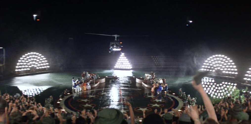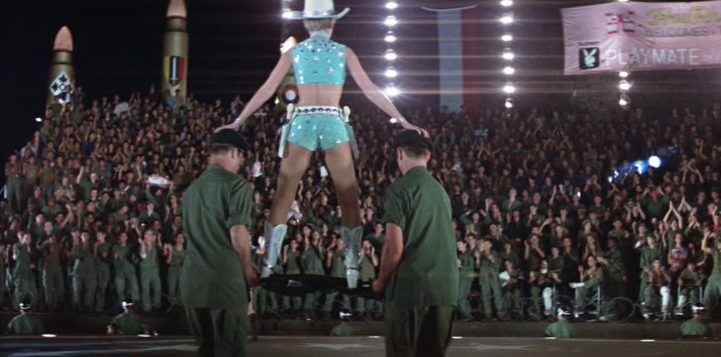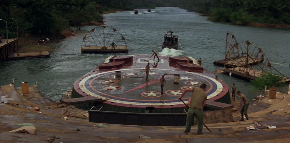 Nei giorni successivi Willard continua ad analizzare l’enigmatica figura di Kurtz, domandandosi perché l’Intelligence voglia la sua morte. La barca nel frattempo si addentra lungo il corso del fiume, giungendo a una base avanzata di rifornimento. Qui il gruppo si trova ad assistere a uno spettacolo sponsorizzato dalla celebre rivista Playboy. Ben presto lo show degenera perché alcuni soldati tentano di aggredire le “conigliette” durante l’ arroventata esibizione, costringendole così alla fuga su un elicottero.