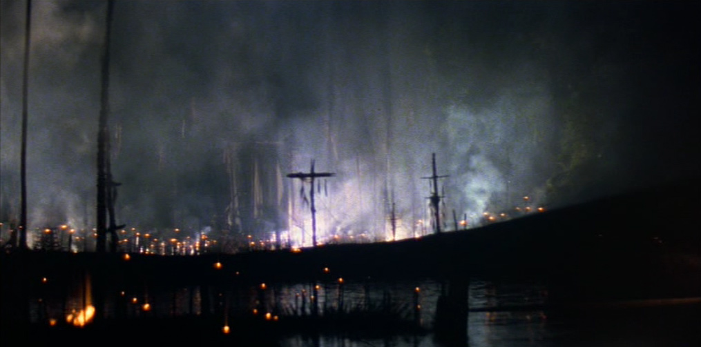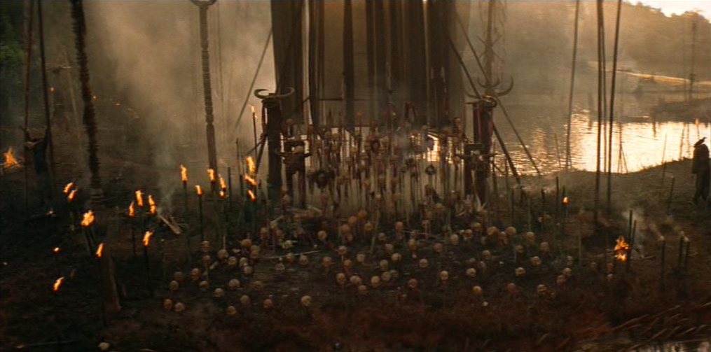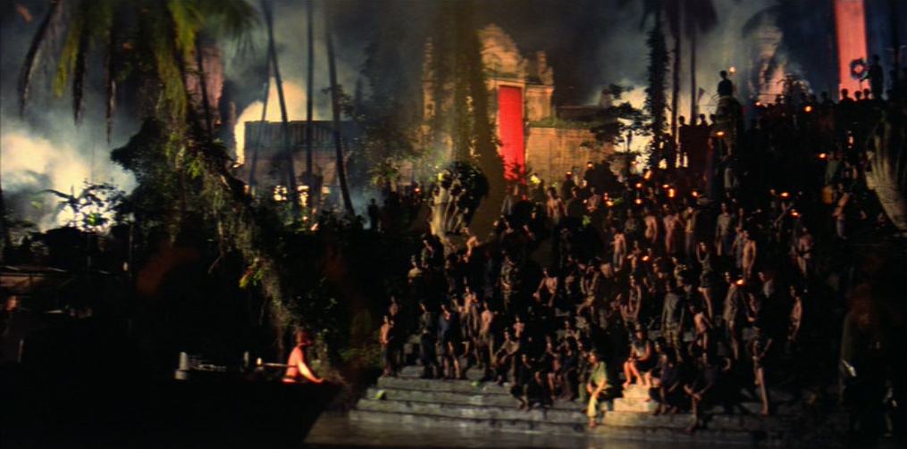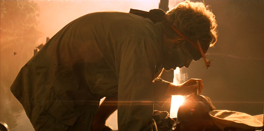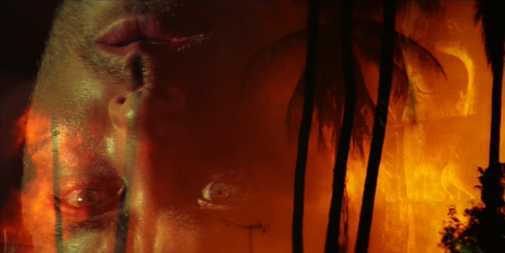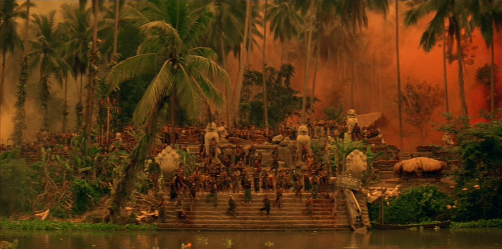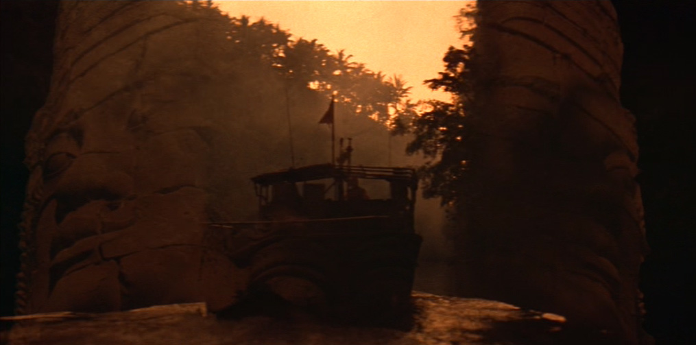 Il viaggio a ritroso verso Kurtz non è solo viaggio verso la darkness, la wilderness, il proprio «doppio», ma è anche un viaggio verso l’archetipo letterario e cinematografico, contrassegnato non a caso da un infittirsi di riferimenti «mitici» e da alcune marcate ed evidenti regressioni «linguistiche», attraverso l’accozzaglia Kitsch e il primitivismo orientaleggiante degli anni ’60, il décor approssimativo e pastricciato da film esotico della Hollywood di decenni ormai lontani, gli «arcaismi» della frantumazione delle inquadrature e dell’uso simbolico del montaggio (omaggio a Ejzenštejn) nella sequenza del doppio abbattimento di Kurtz e dell’animale. Ma è proprio là dove il film gioca la carta della globalità, della circolarità e della chiusura totalizzante, che la Storia scompare o diventa l’ «incubo» joyciano da cui ci si vorrebbe «risvegliare»; e la «story» si rivela come organizzazione tattica di «punti focali», di «attrazioni» che finiscono per prevalere sul disegno narrativo-simbolico che la dovrebbe «ordinare». L’Epifania sembra non aver luogo, la Parola (Orrore. Orrore) è solo tautologia (dopo quello che si è visto!) o citazione e la Fine è solo un intricato gioco di varianti possibili.
