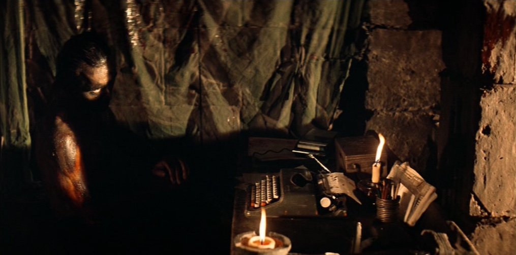 Tutto si consuma durante il festeggiamento pagano dei “montagnard”, dove un bue viene sacrificato. Dopo essersi ripreso dalla prigionia, alimentato e curato da alcune vestali del colonnello impazzito, Willard si sottopone a una veglia purificatrice. Vestito con una tunica in stile “samurai”, egli penetra furtivamente nella camera di Kurtz e, mentre l’uomo sta trasmettendo uno dei suoi deliranti messaggi, lo uccide barbaramente con un machete. L’allucinata sequenza ha per sottofondo The End, la celebre canzone dei The Doors, presente anche nella sequenza iniziale del film. Kurtz muore sussurrando «L’orrore… l’orrore», come del resto fa l’omonimo personaggio conradiano di Cuore di tenebra.